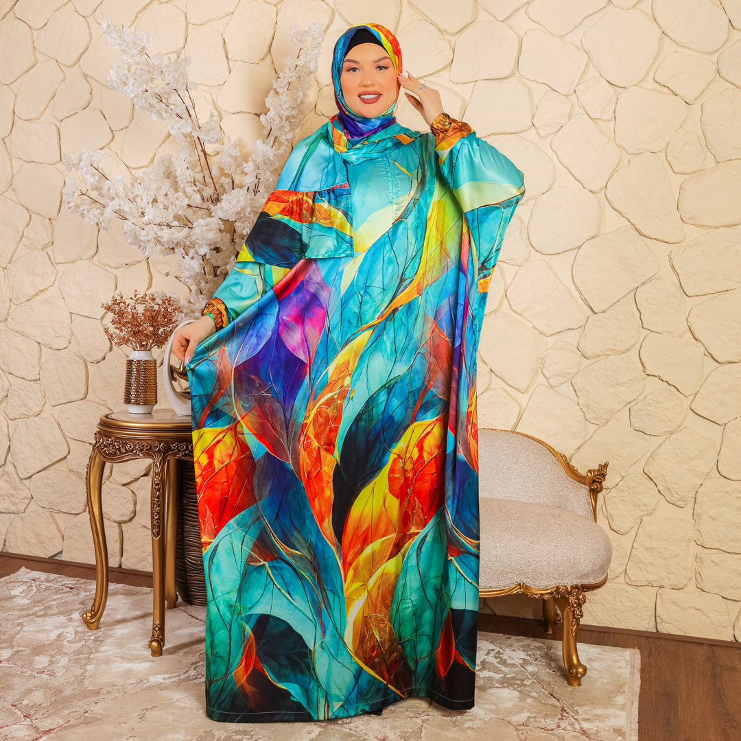 Practical Silky satin prayer dress( Isdal) Free Size fits 70kg to 130kg- Turkish