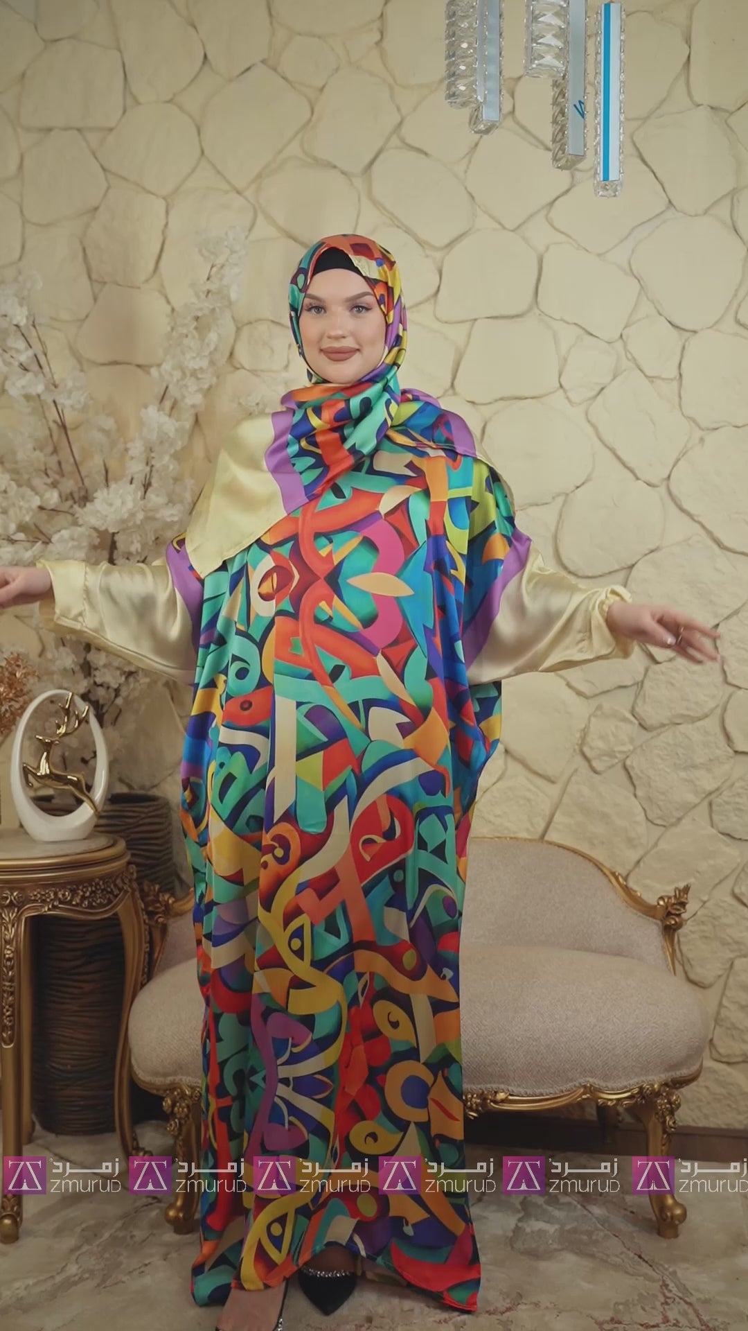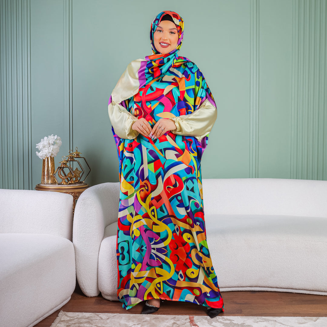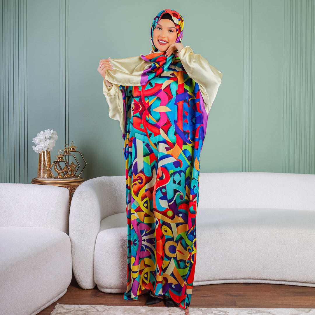 Practical Printed - silky satin prayer dress with headscarf