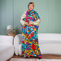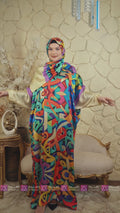 Practical Silky Satin prayer dress (Isdal) (digital print our own designs) Free Size fits 70kg to 90kg With a connected veil