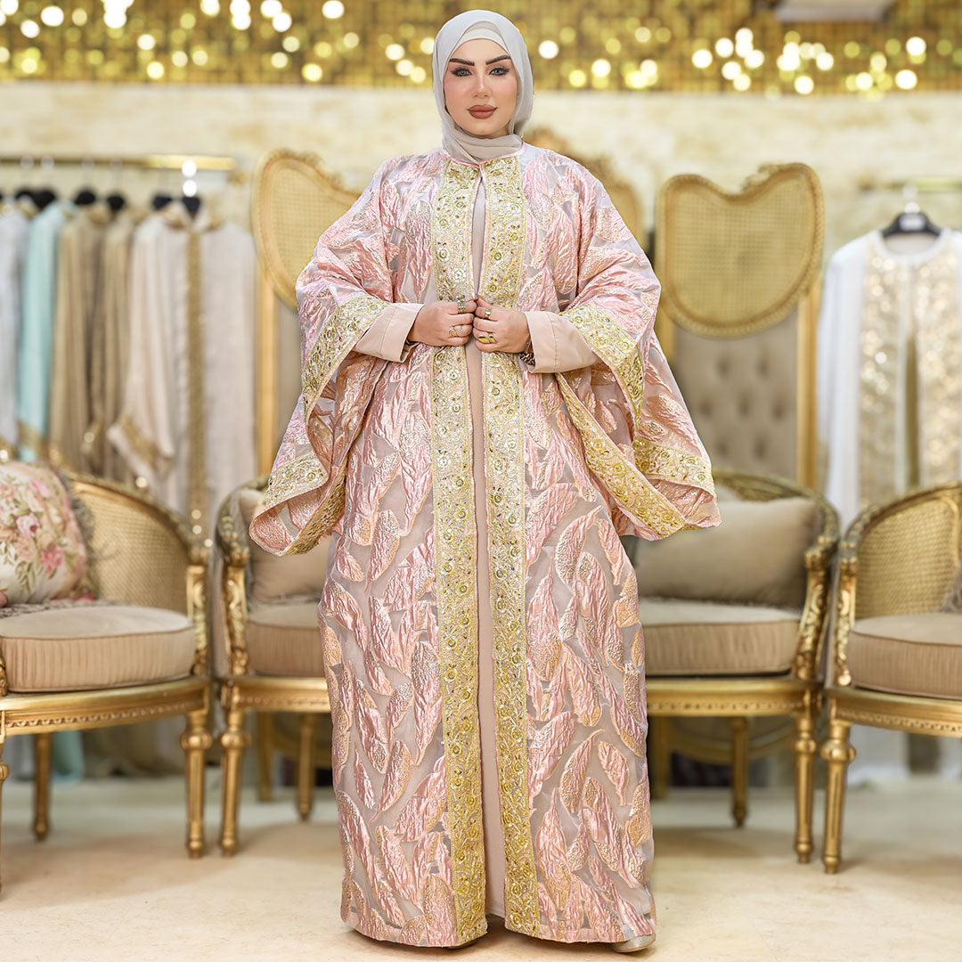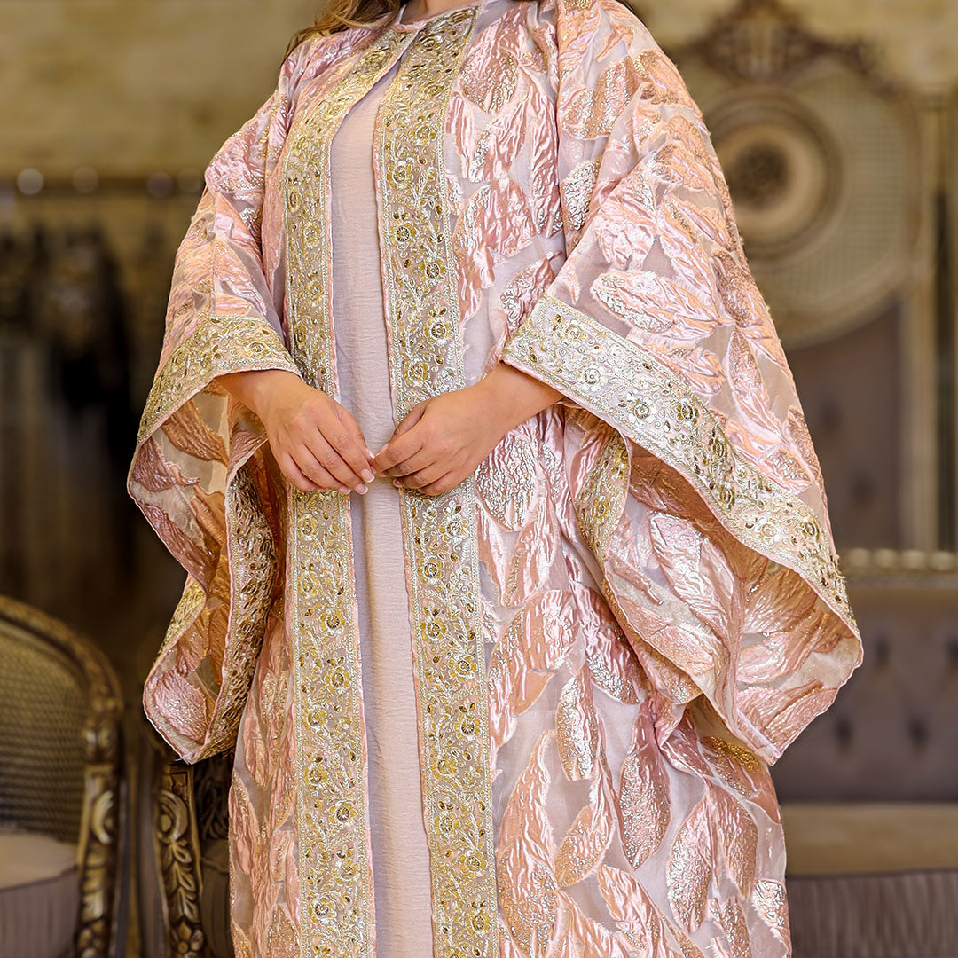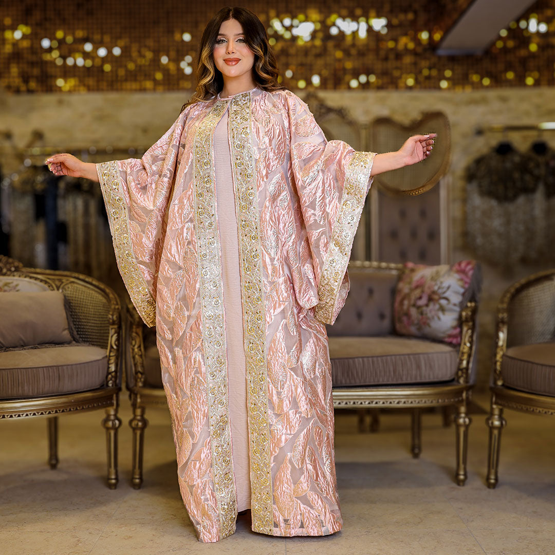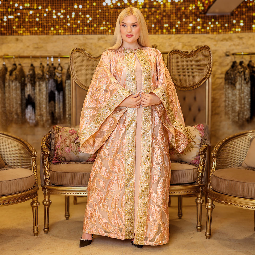 Bahraini kaftan made of embroidered brocade fabric, Indian embroidery Free size, fits 70-130 kg.