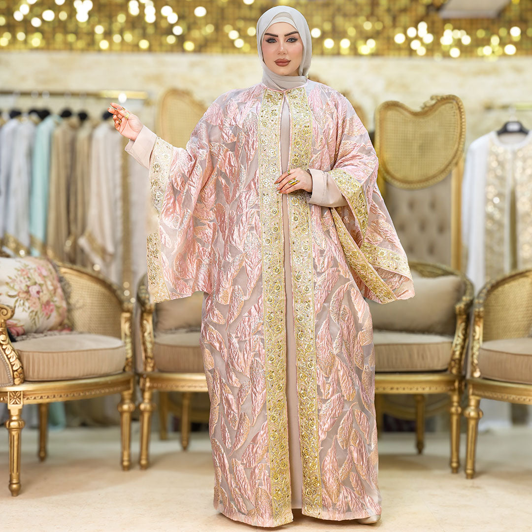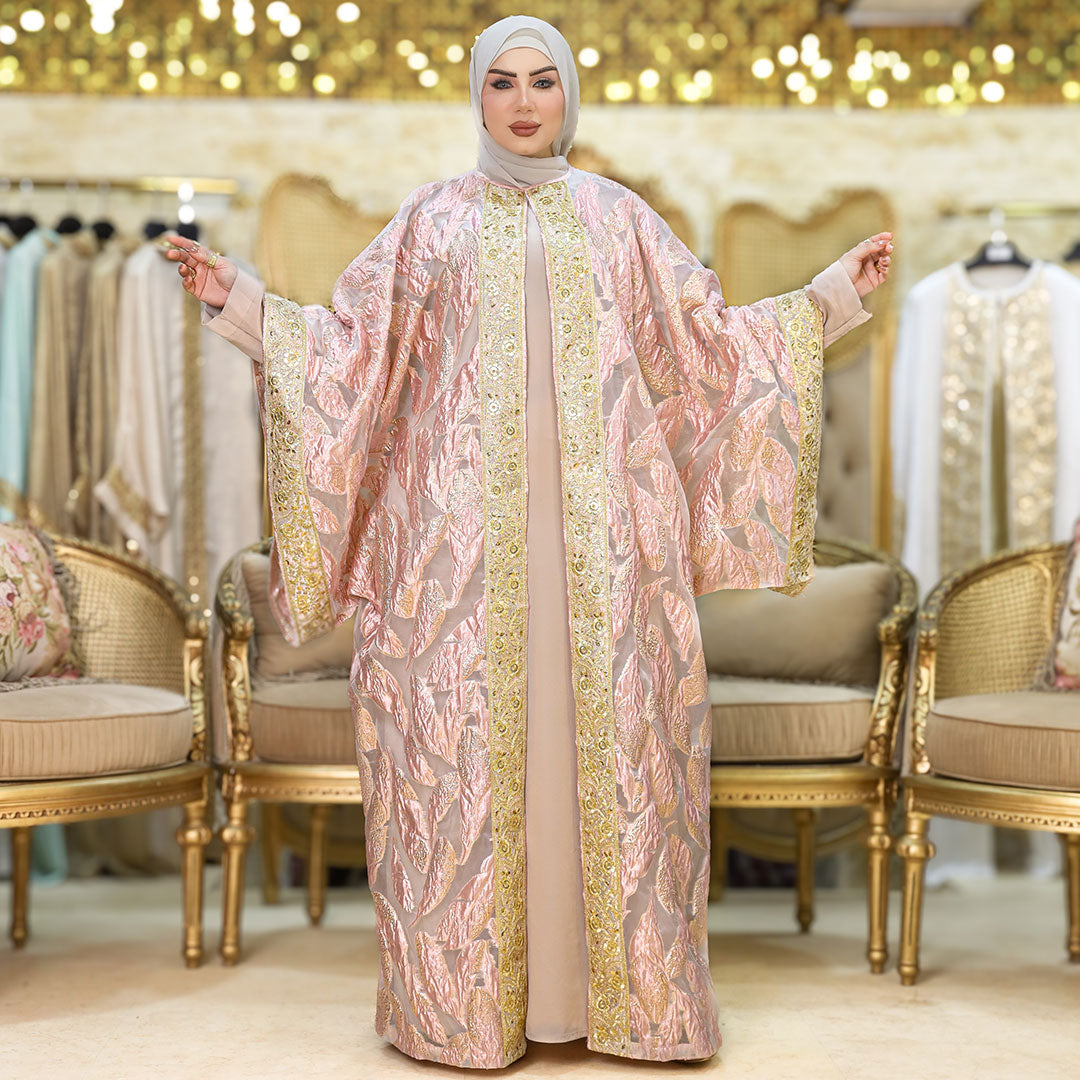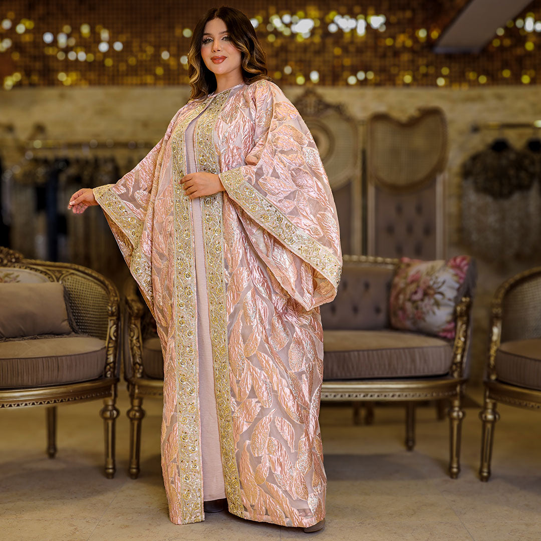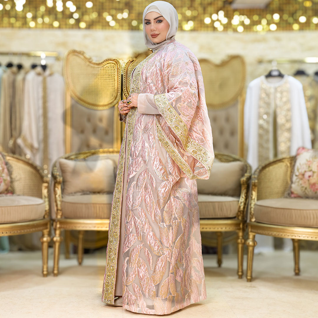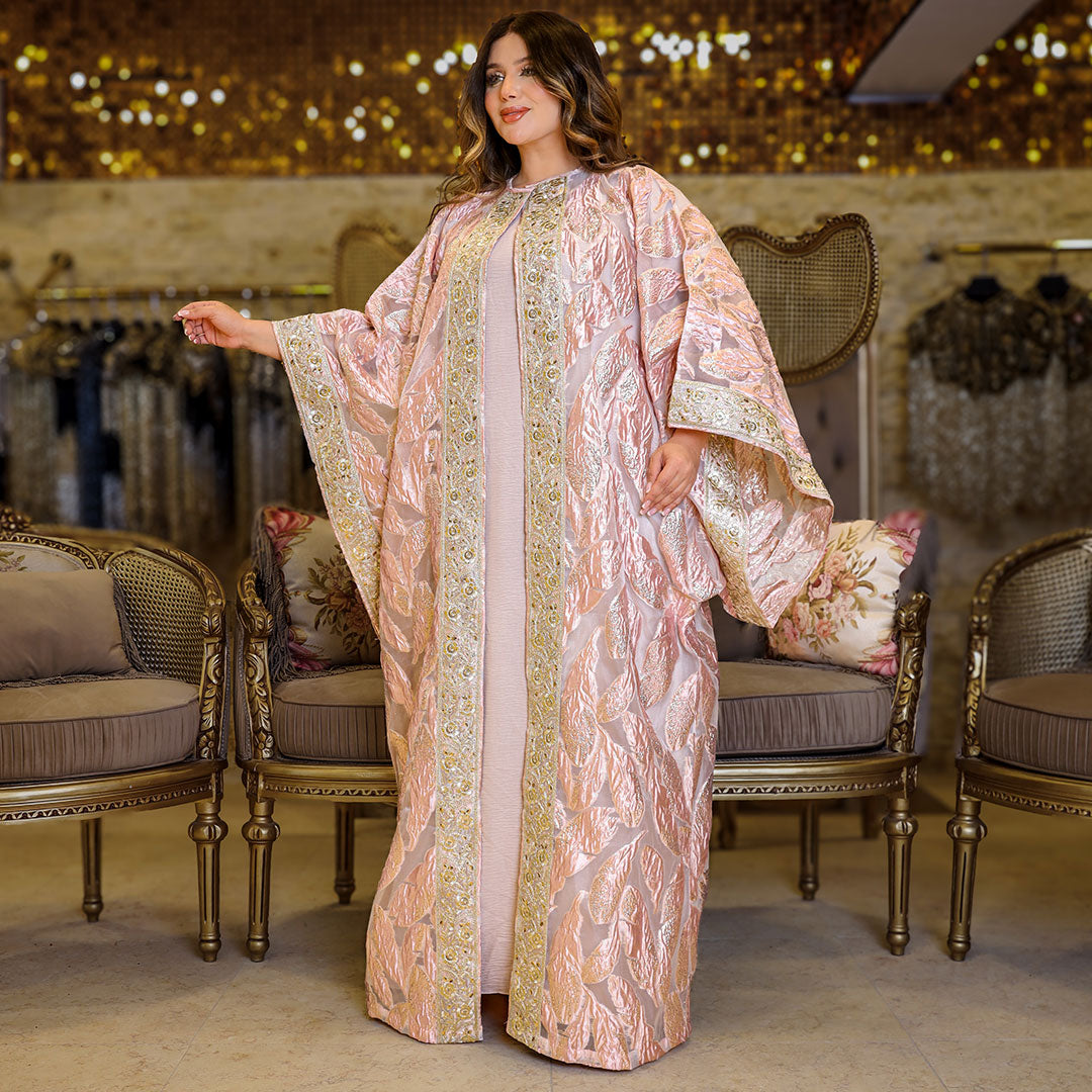 Bahraini kaftan made of embroidered brocade fabric, Indian embroidery Free size, fits 70-130 kg.