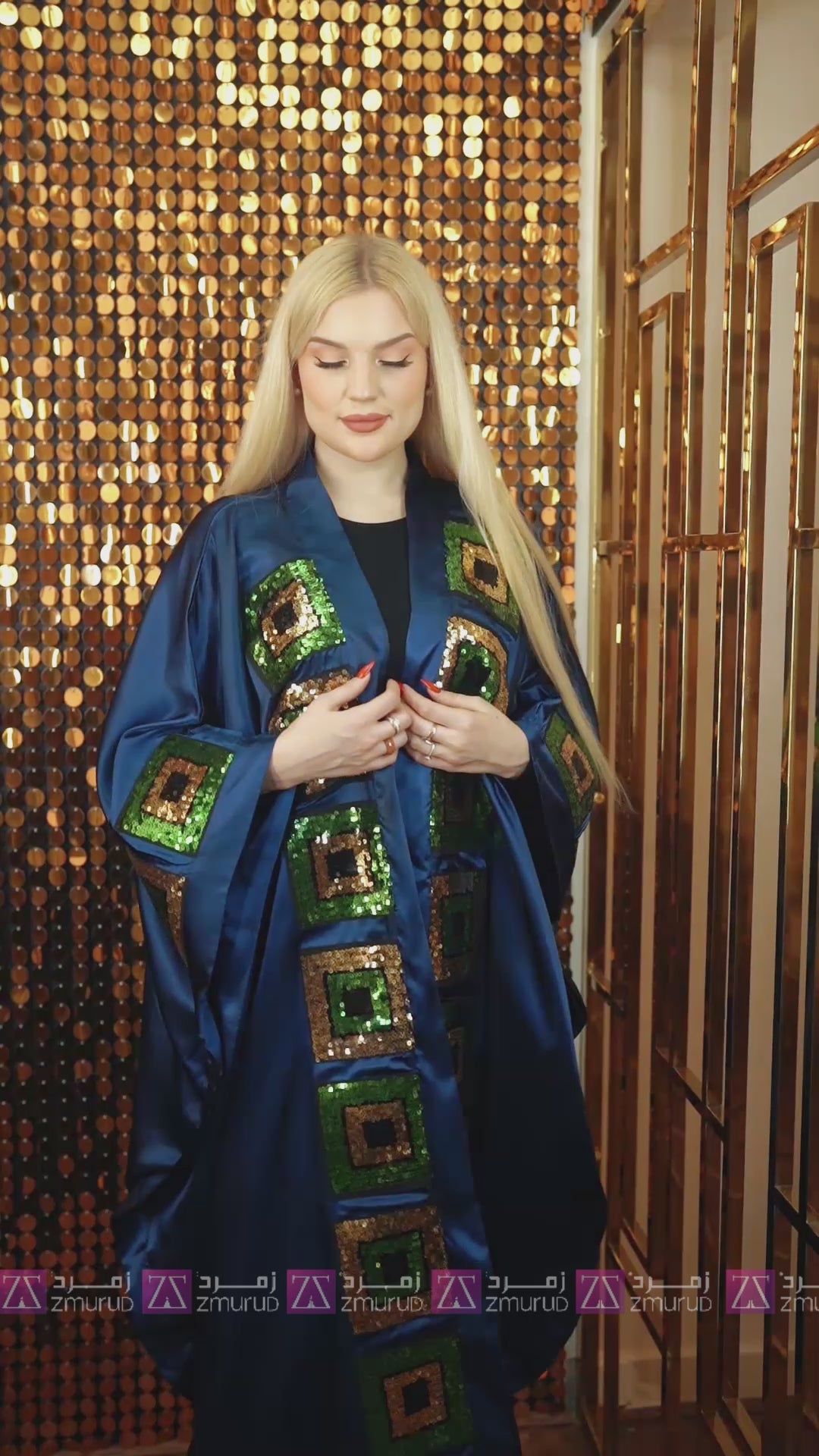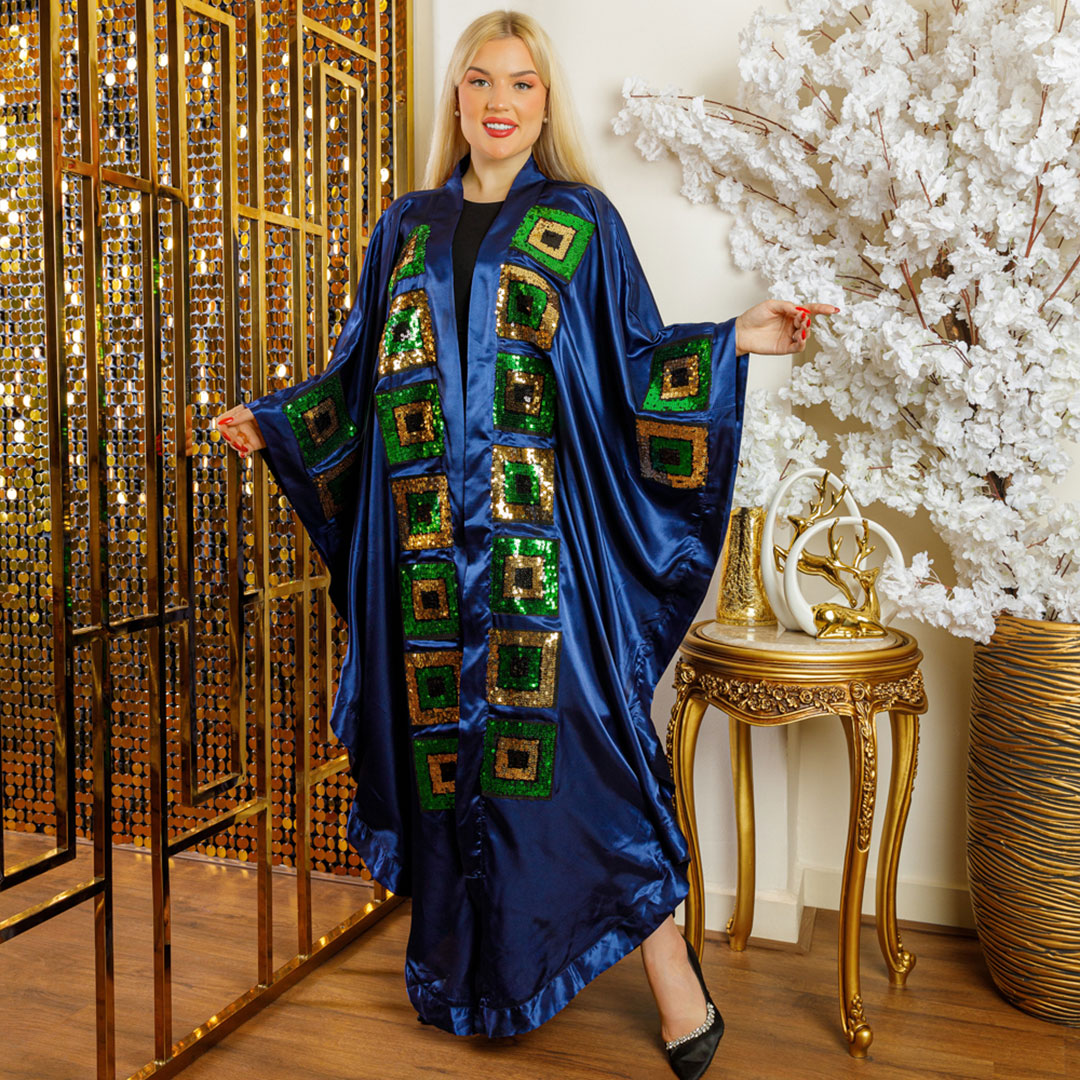 Satin Silk Kaftan - Soft embroidered and decorated with sequin embroidery appliqués