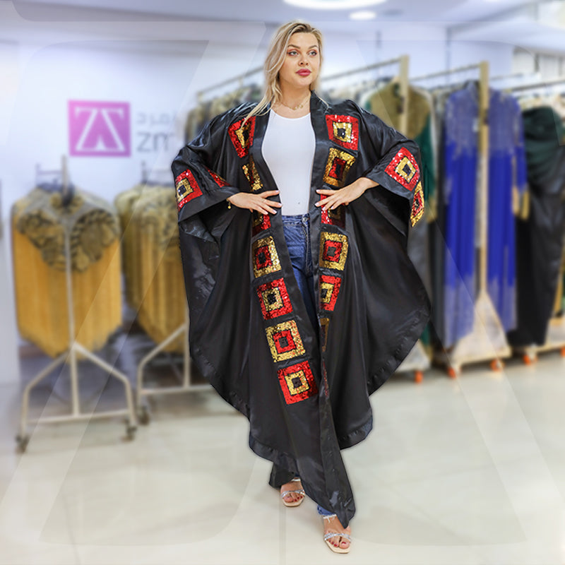 Satin Silk Kaftan - Soft embroidered and decorated with sequin embroidery appliqués