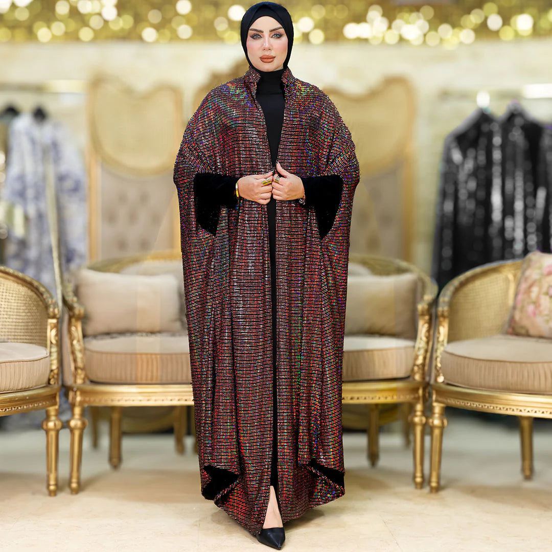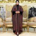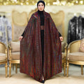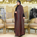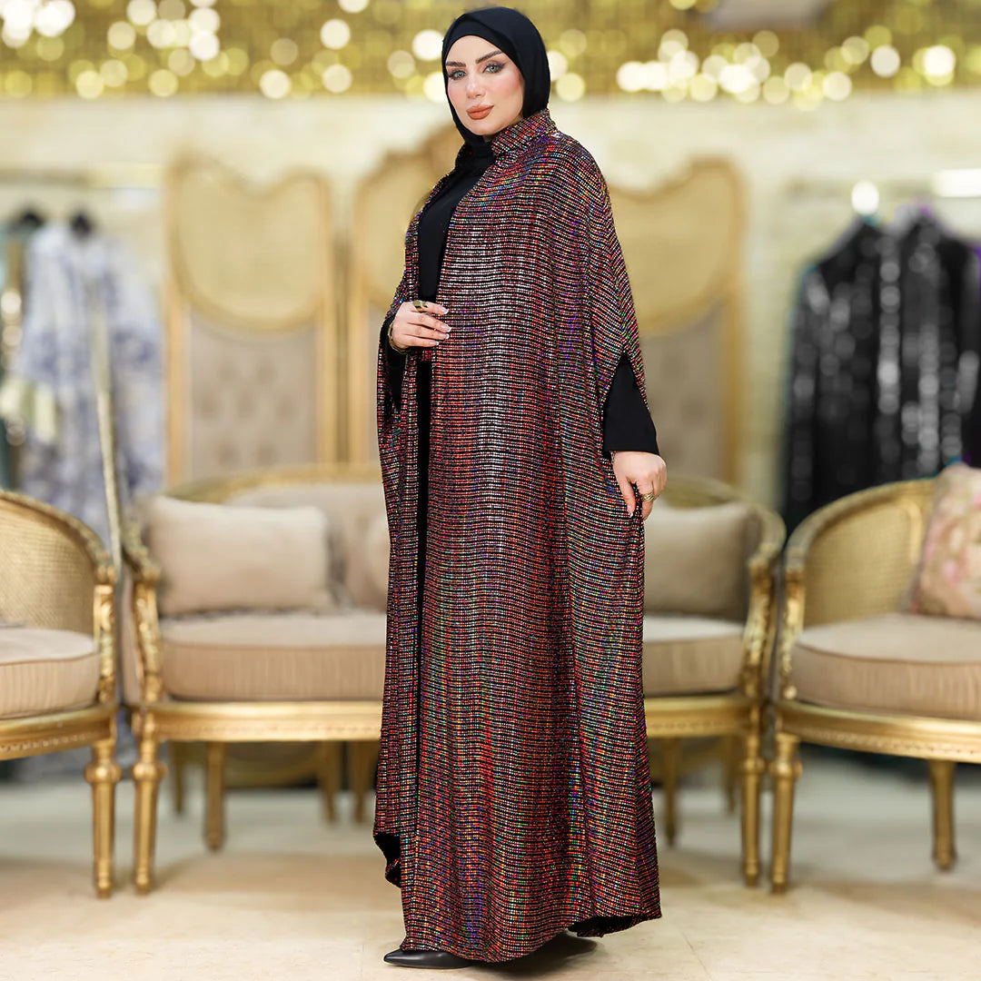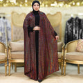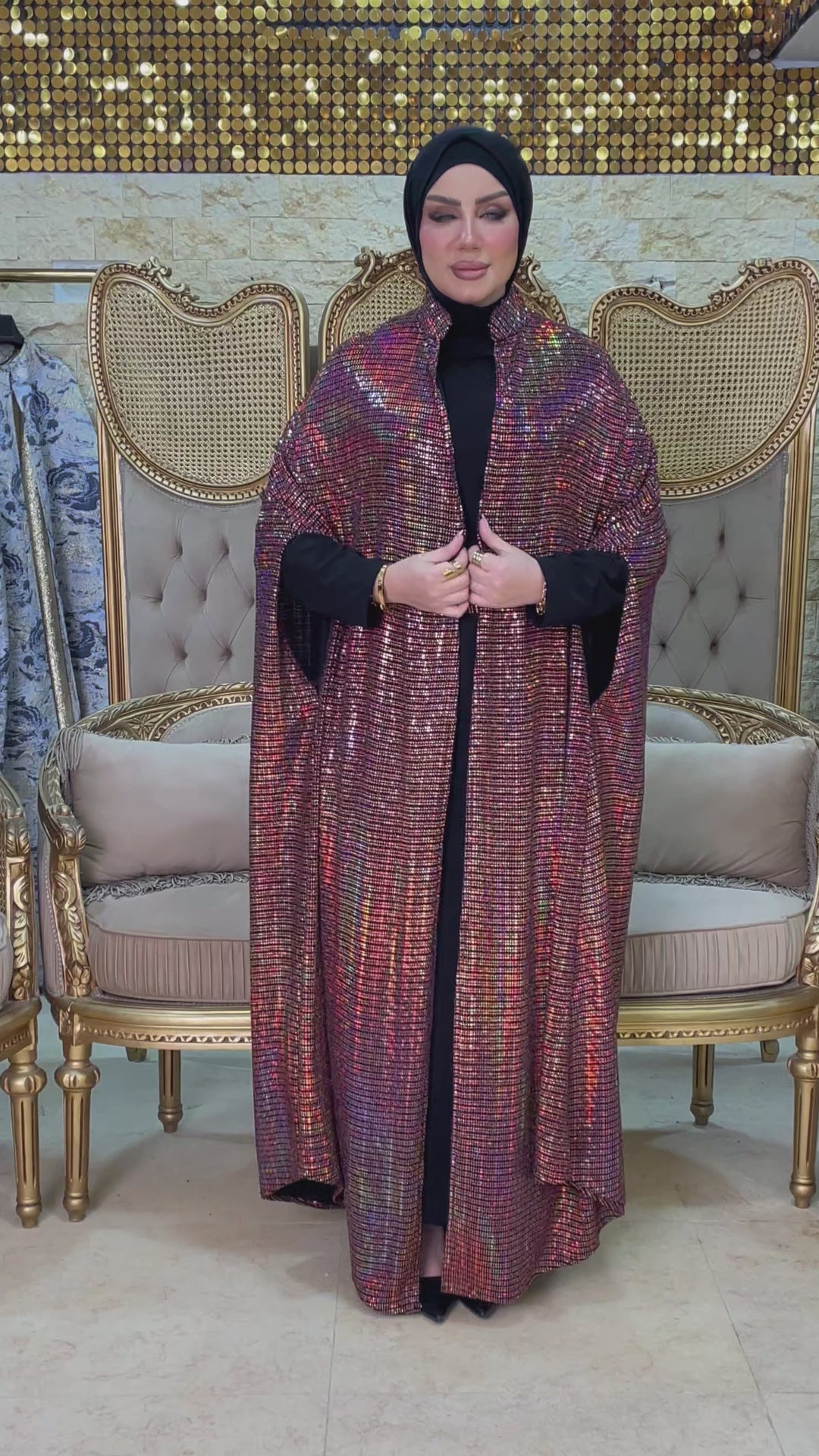 This elegant Soirée gown is adorned with shiny crystal embellishments, paired with a matching belt to highlight a central arabic design.