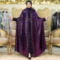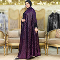 This elegant Soirée gown is adorned with shiny crystal embellishments, paired with a matching belt to highlight a central arabic design.