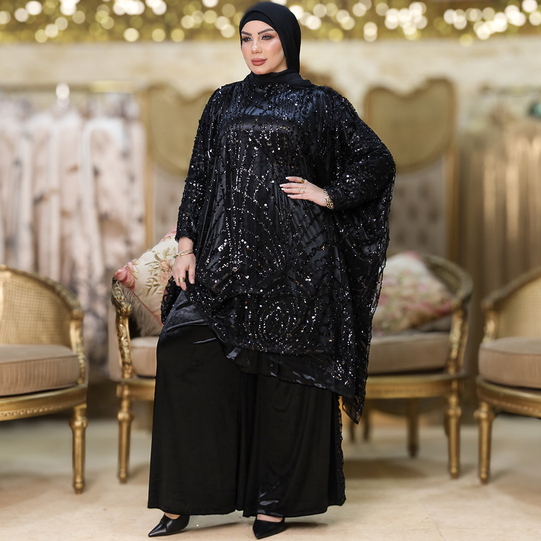 two-piece soirée suit is made from organza fabric,with a French velvet lining