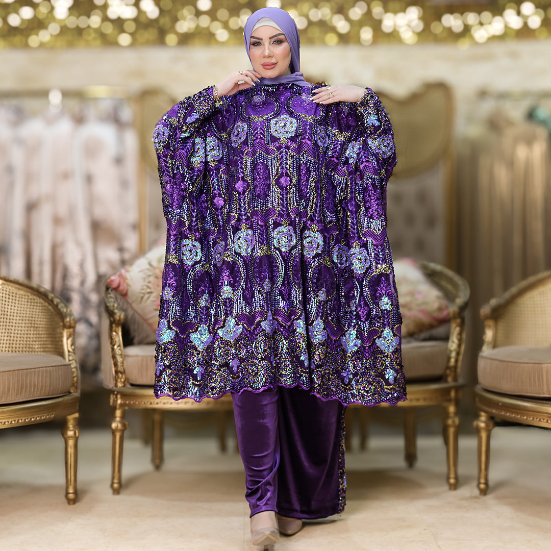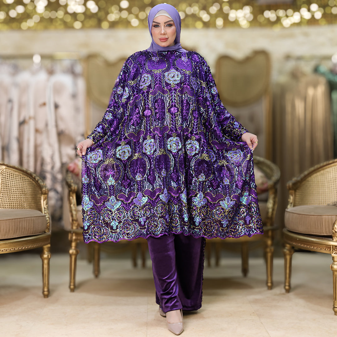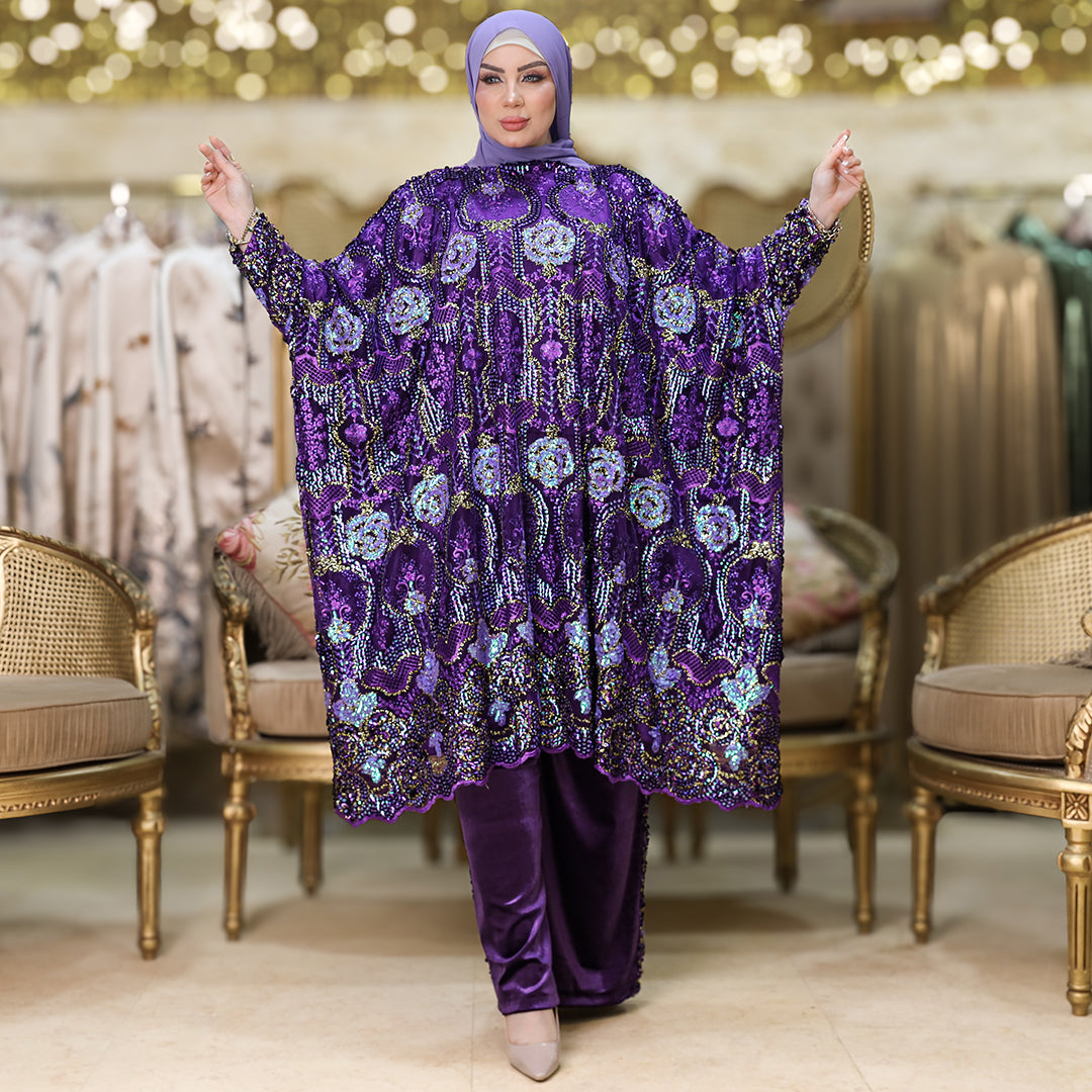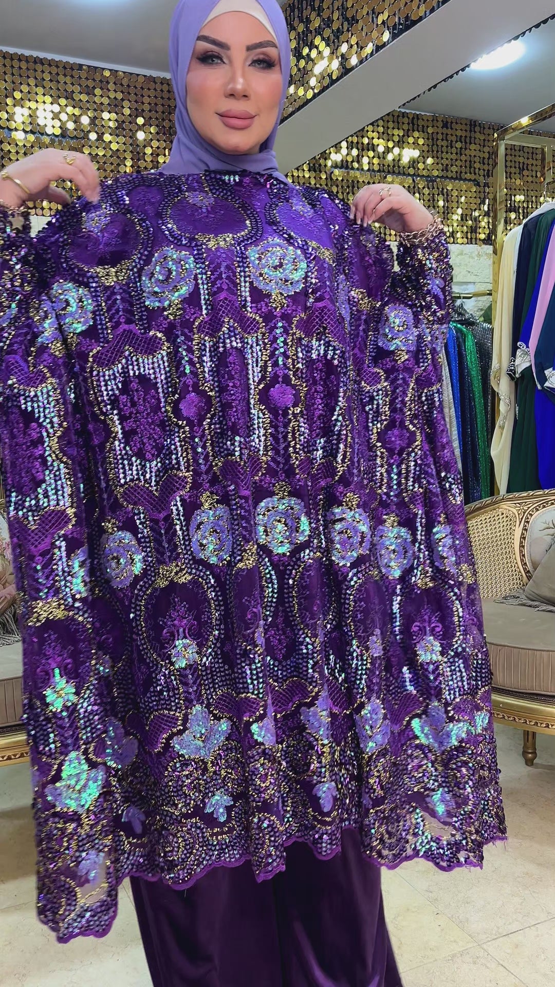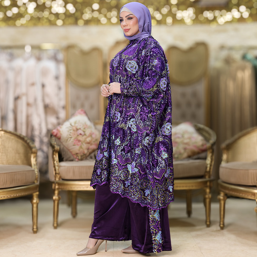 two-piece soirée suit is made from organza fabric,with a French velvet lining