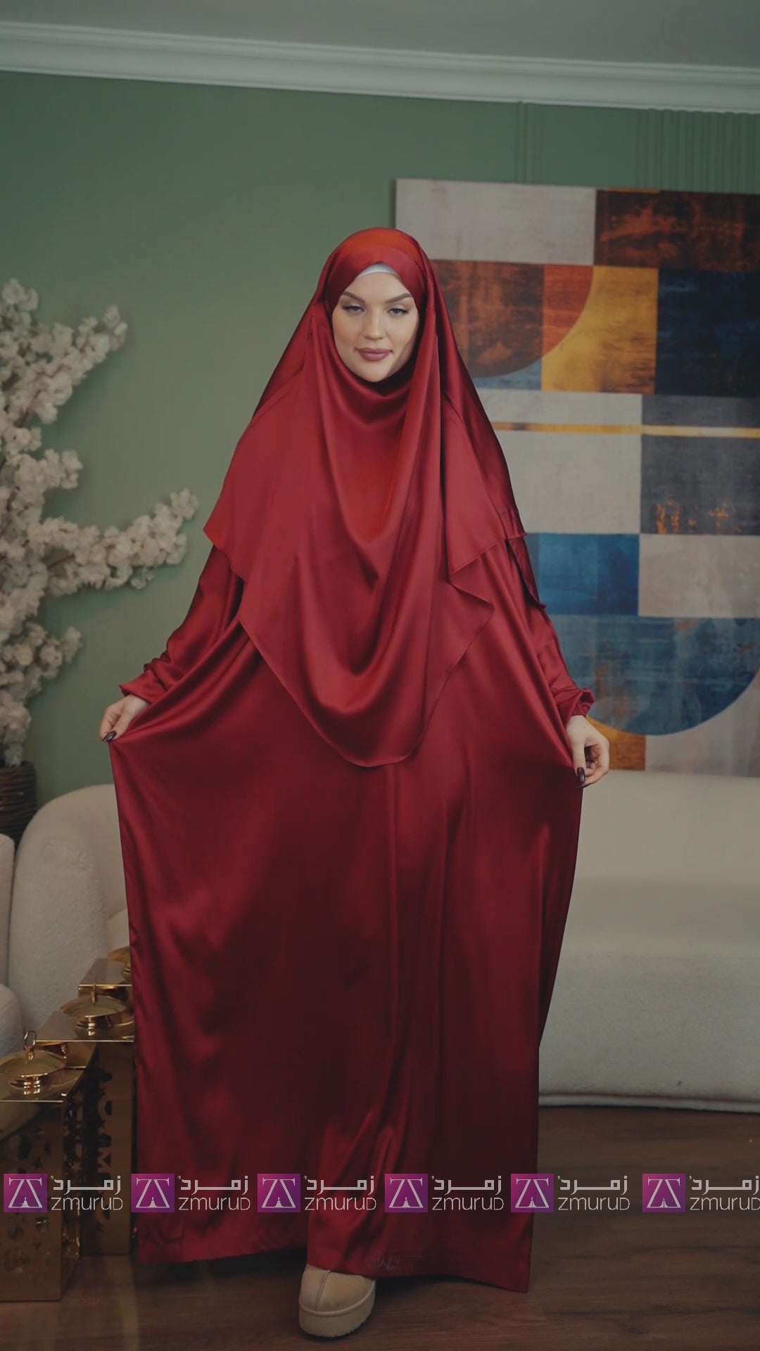 Practical Silky Satin  prayer dress(isdal) , colorful, with a long veil, free size, fits 70kg to 130kg Height from shoulder 155 cm-French