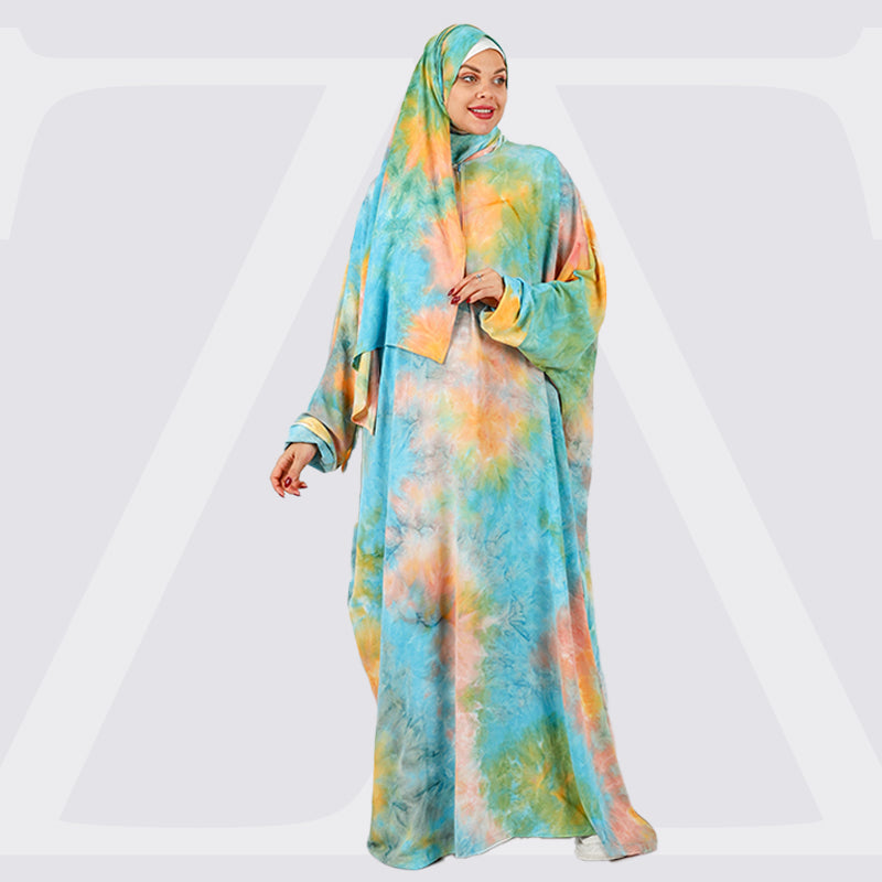 Practical crepe Royal Tie-dye prayer dress (Isdal) Free Size fits 70kg to 120kg With a headscarf