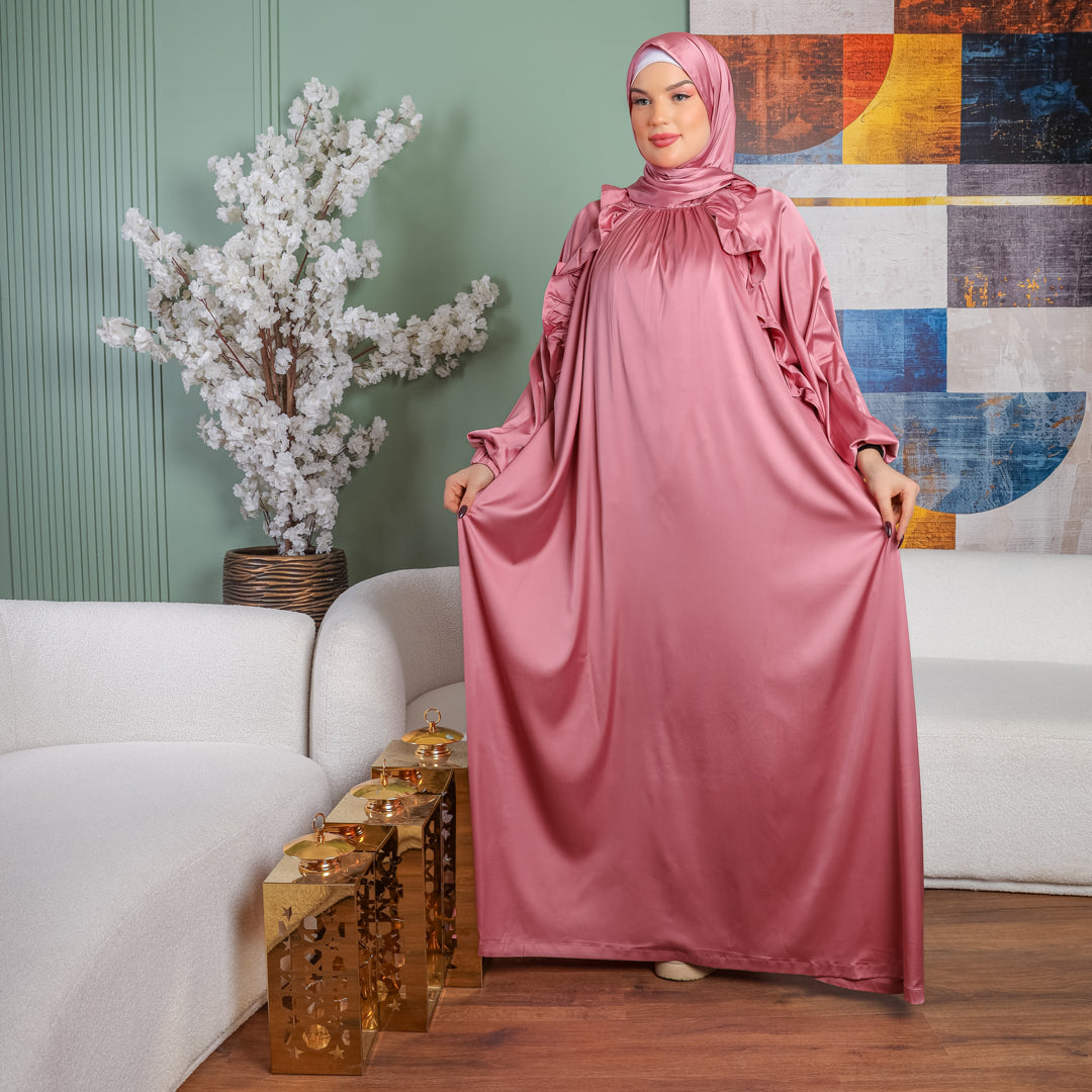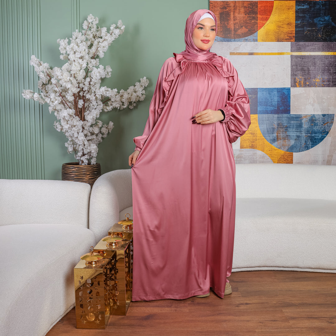 Practical Silky satin prayer dress( Isdal) Free Size fits 70kg to 130kg- Turkish