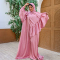 Turkish - Practical plain silky satin prayer dress with headscarf