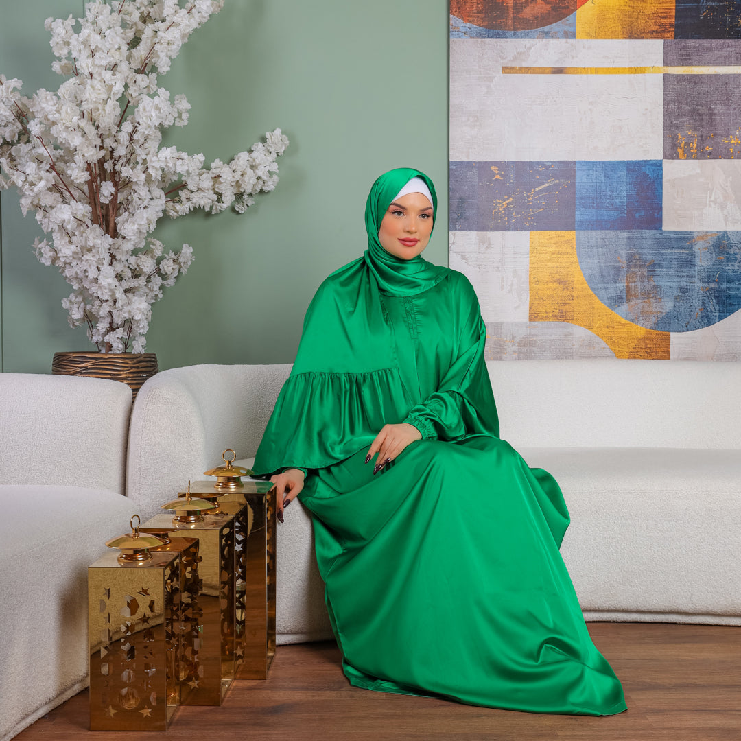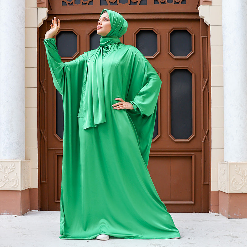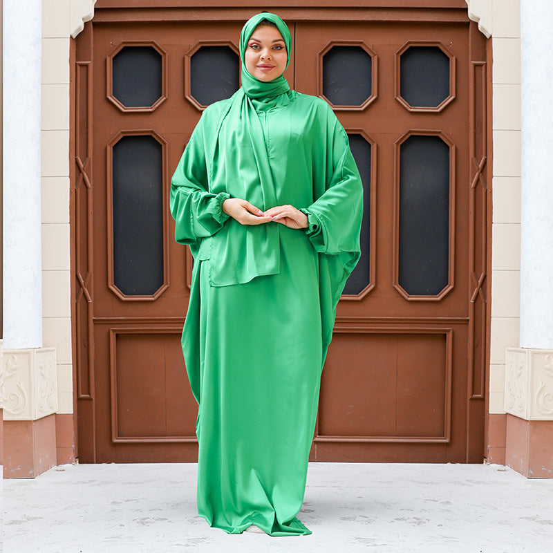 Armani - Practical plain silky satin prayer dress with headscarf