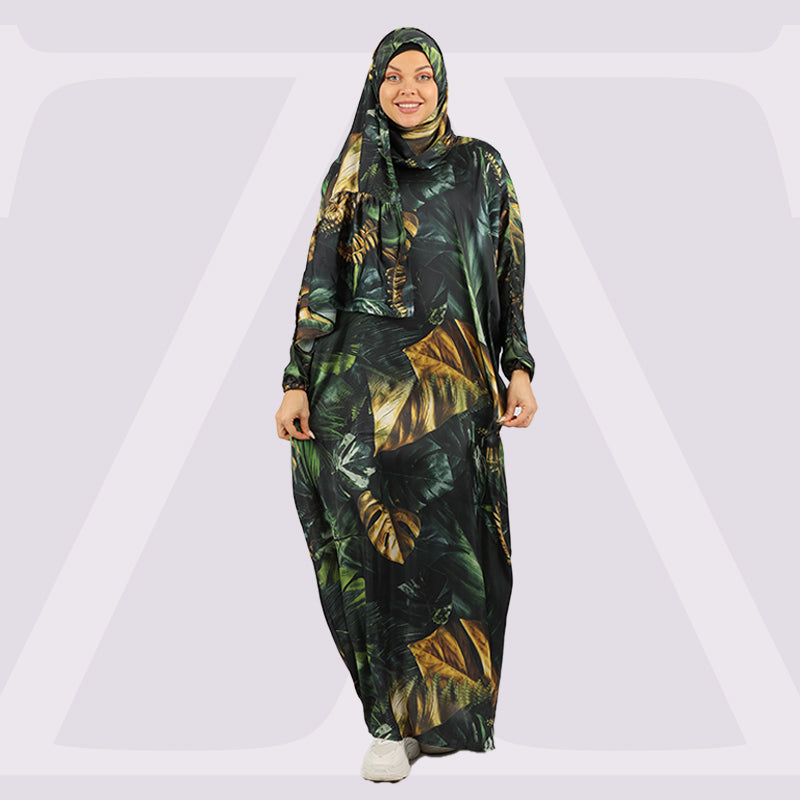 Practical Silky Satin prayer dress (Isdal) (digital print our own designs) Free Size fits 70kg to 130kg With a connected veil