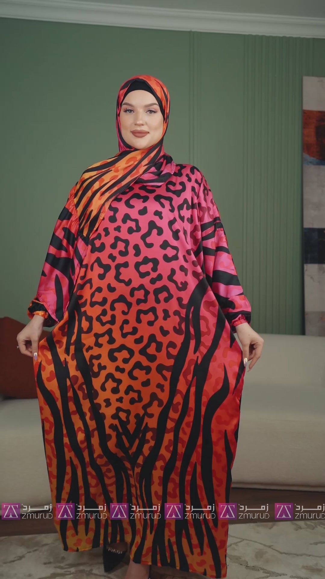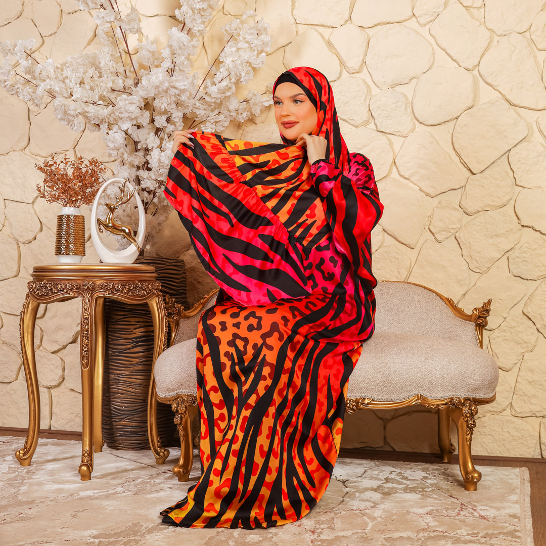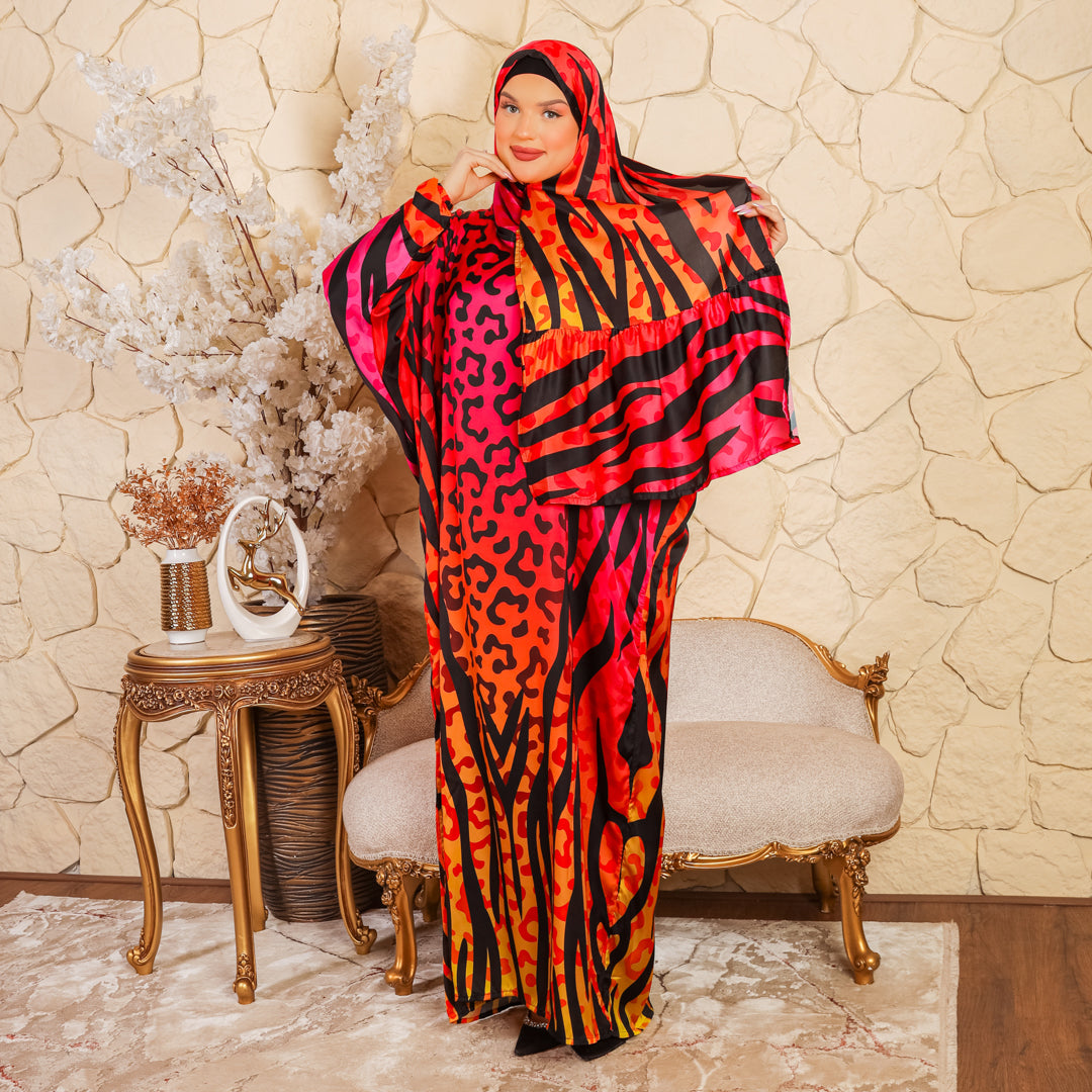 Practical Silky Satin prayer dress (Isdal) (digital print our own designs) Free Size fits 70kg to 90kg With a connected veil