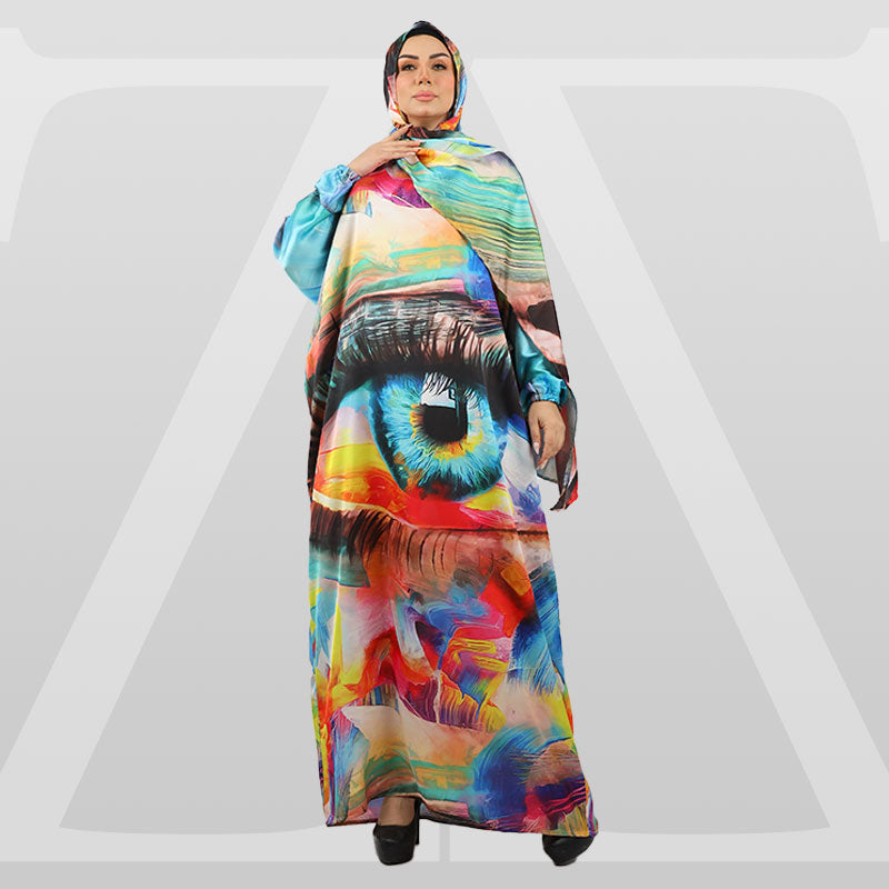 Practical Silky Satin prayer dress (Isdal) (digital print our own designs) Free Size fits 70kg to 90kg With a connected veil