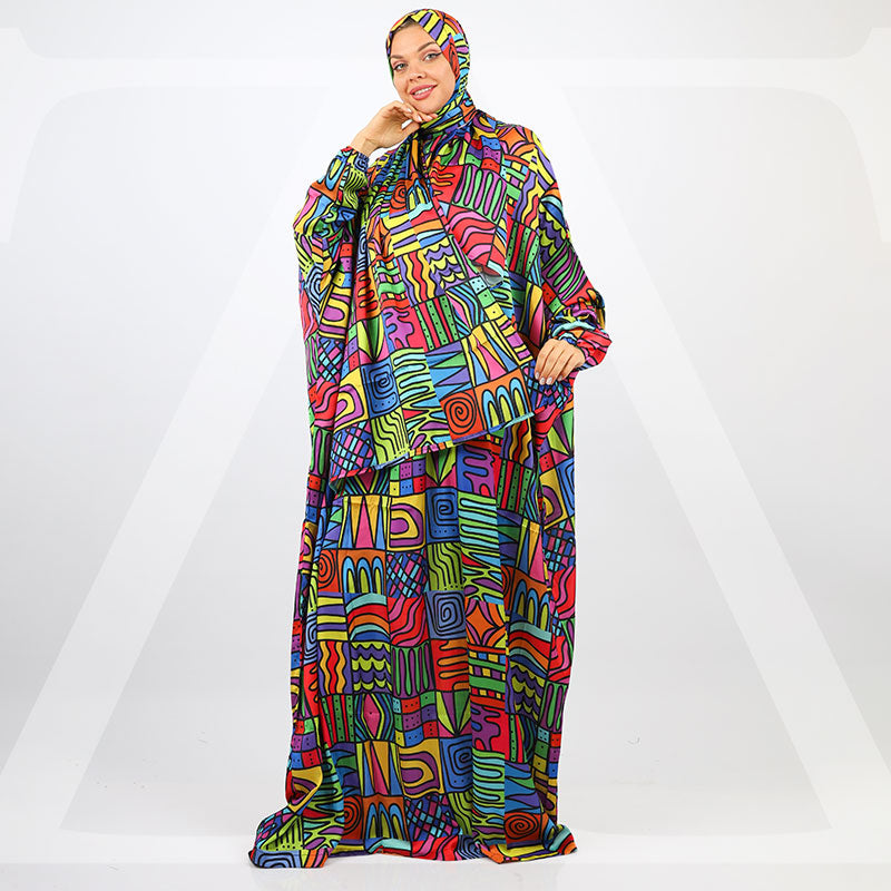 Practical Printed - silky satin prayer dress with headscarf
