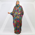 Practical Silky Satin prayer dress (Isdal) (digital print our own designs) Free Size fits 70kg to 130kg With a connected veil