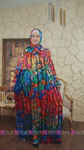 Practical Silky Satin prayer dress (Isdal) (digital print our own designs) Free Size fits 70kg to 130kg With a connected veil