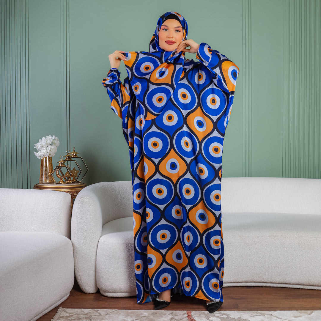Practical Silky Satin prayer dress (Isdal) (digital print our own designs) Free Size fits 70kg to 90kg With a connected veil