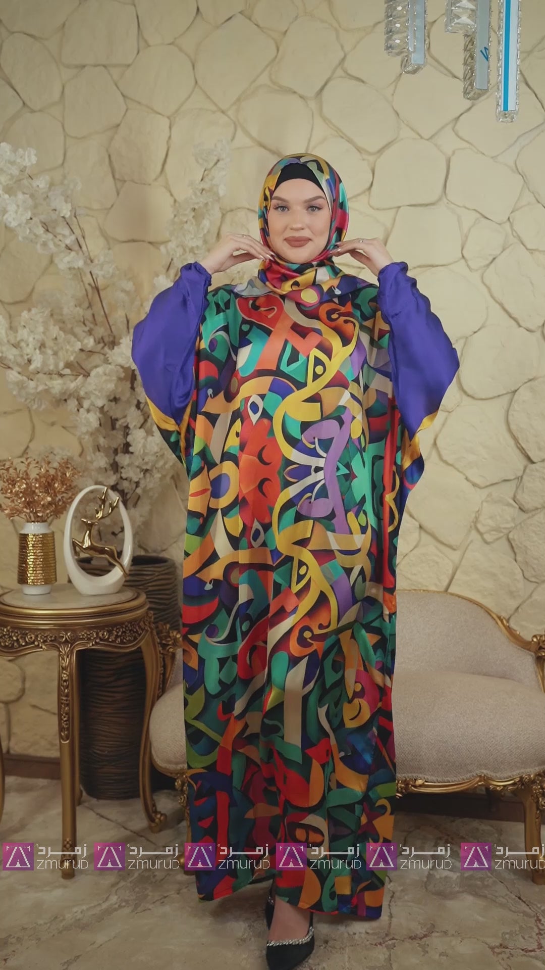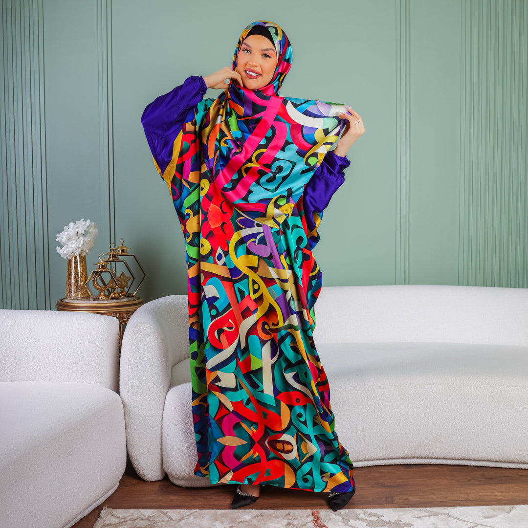 Practical Silky Satin prayer dress (Isdal) (digital print our own designs) Free Size fits 70kg to 90kg With a connected veil