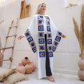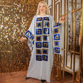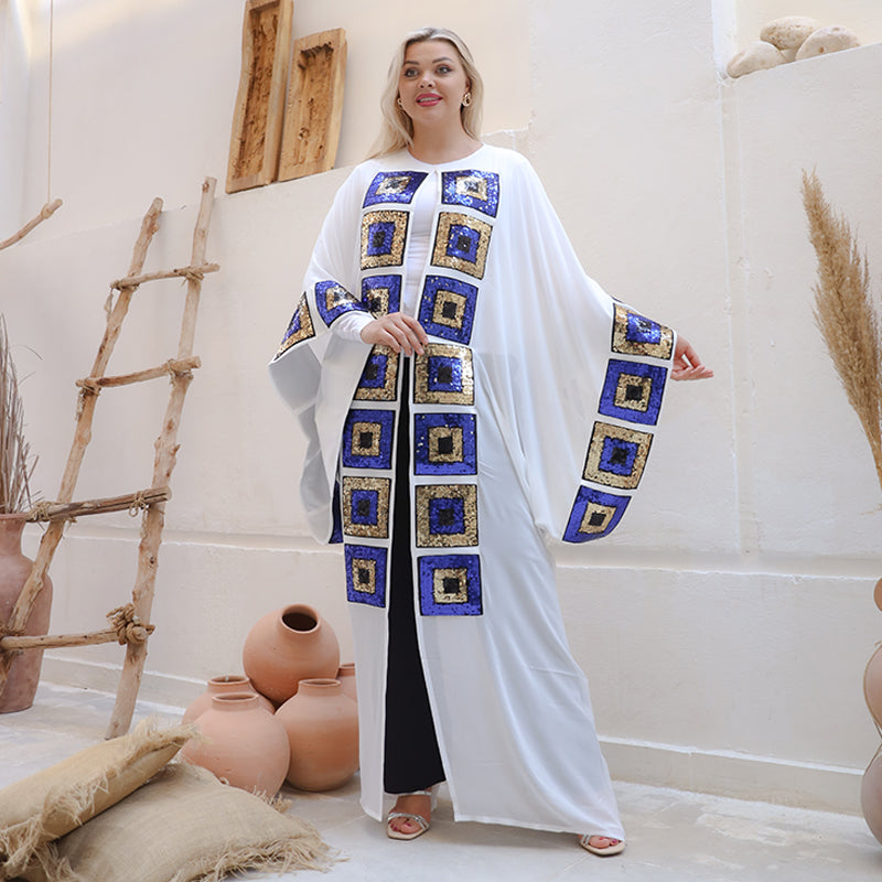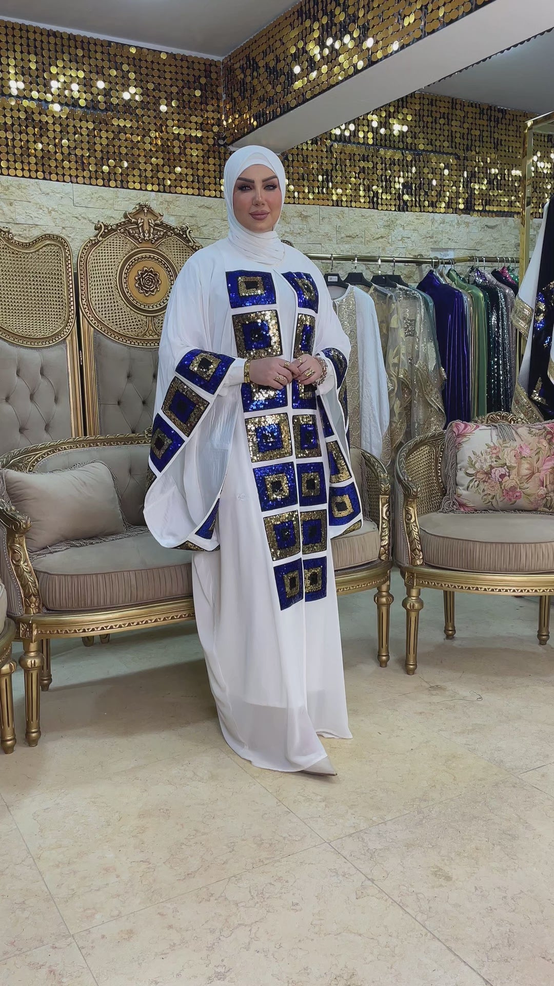 Transparent chiffon caftan without a Bahraini lining, modern embroidery  Free size, fits 70 kg to 130 kg, and length from shoulder 155 cm.