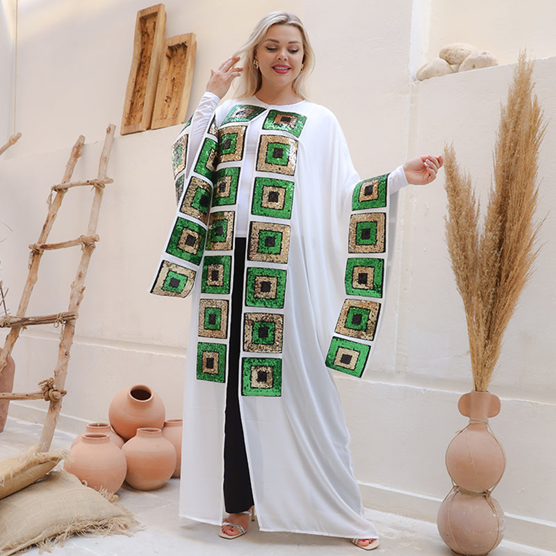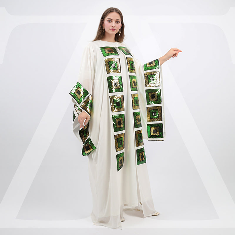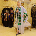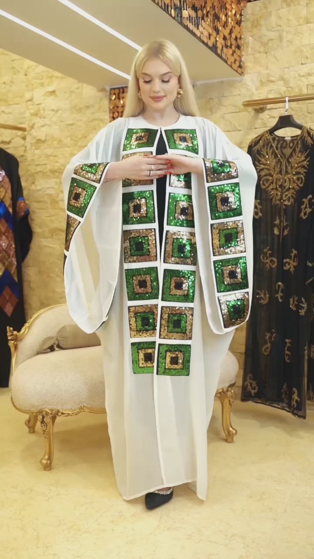 Transparent chiffon caftan without a Bahraini lining, modern embroidery  Free size, fits 70 kg to 130 kg, and length from shoulder 155 cm.