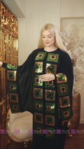 Transparent chiffon caftan without a Bahraini lining, modern embroidery  Free size, fits 70 kg to 130 kg, and length from shoulder 155 cm.