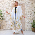 Soft silk Kaftan, digitally printed, from our own designs, modern colors and designs. Free size, suitable for 70 kg to 130 kg.