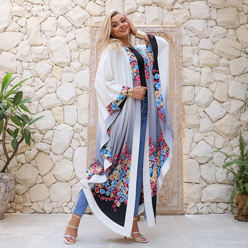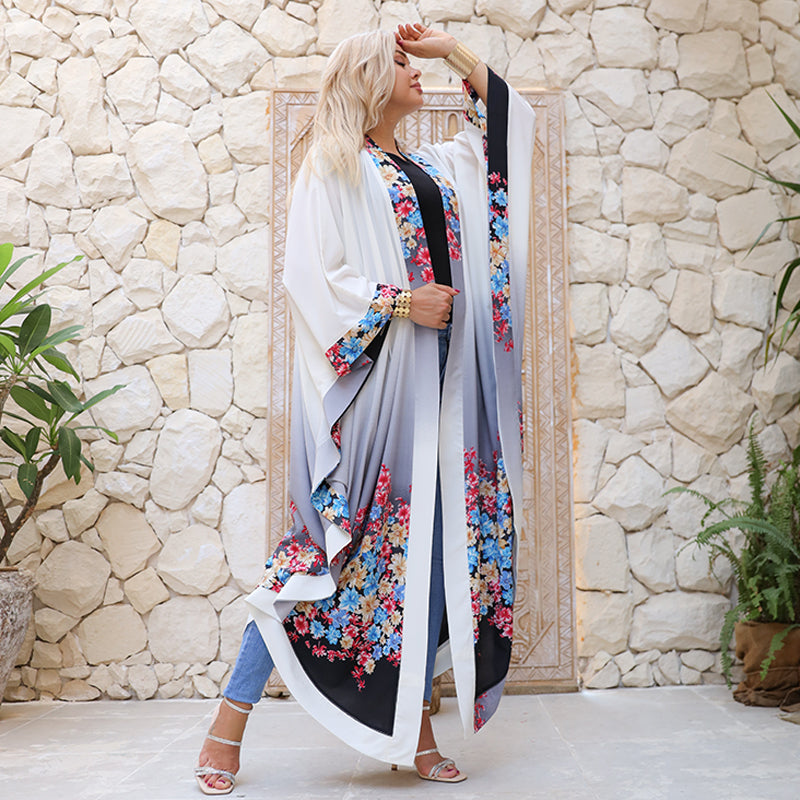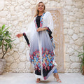 Soft silk Kaftan, digitally printed, from our own designs, modern colors and designs. Free size, suitable for 70 kg to 130 kg.