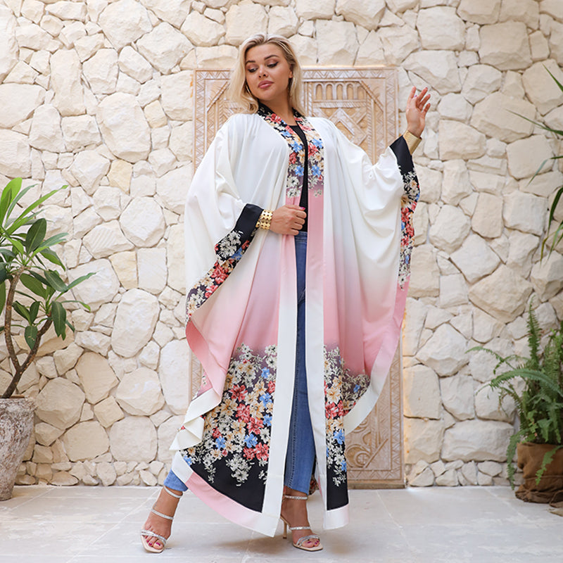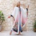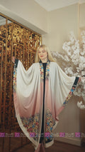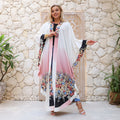 Soft silk Kaftan, digitally printed, from our own designs, modern colors and designs. Free size, suitable for 70 kg to 130 kg.