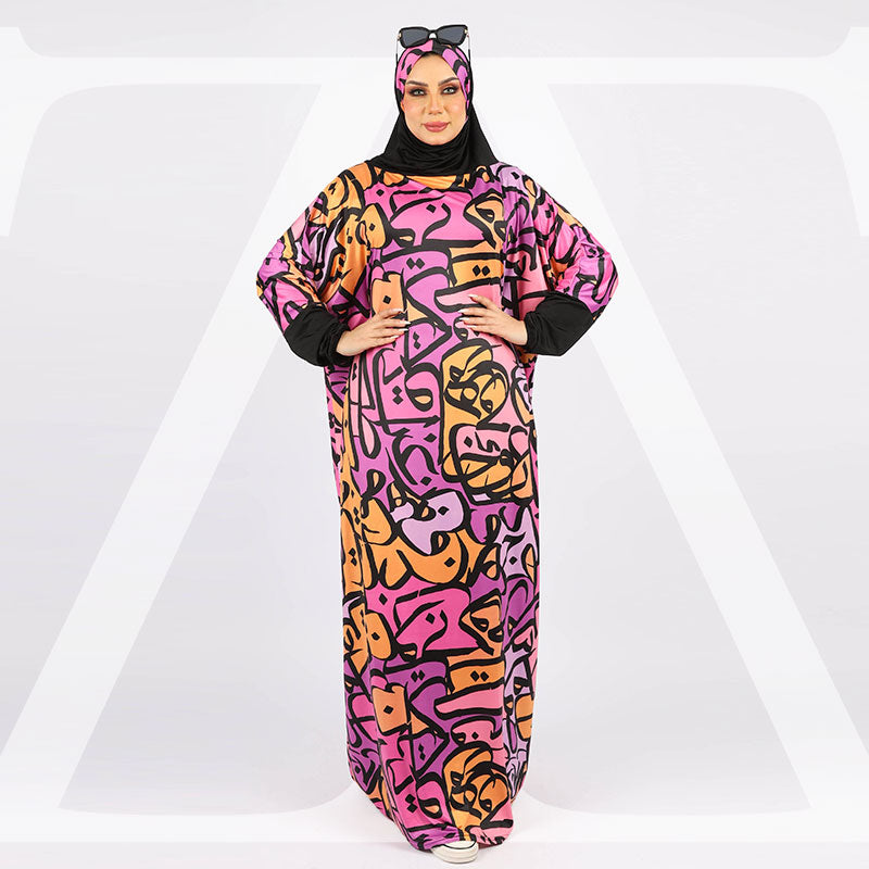 Practical Kuwaiti Jersey prayer dress with headscarf- Printed
