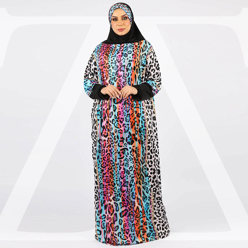 Practical Kuwaiti Jersey prayer dress with headscarf- Printed
