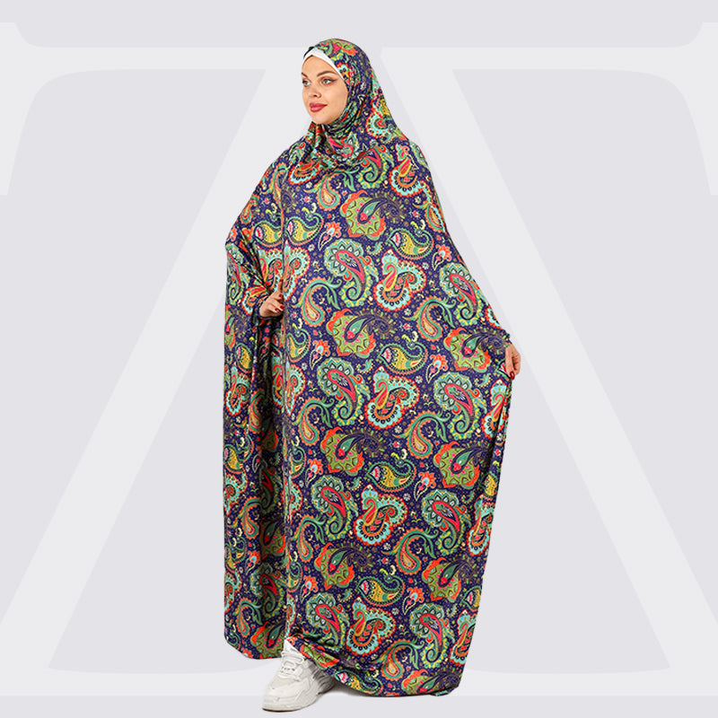 Practical Kuwaiti Jersey prayer dress with headscarf- Printed