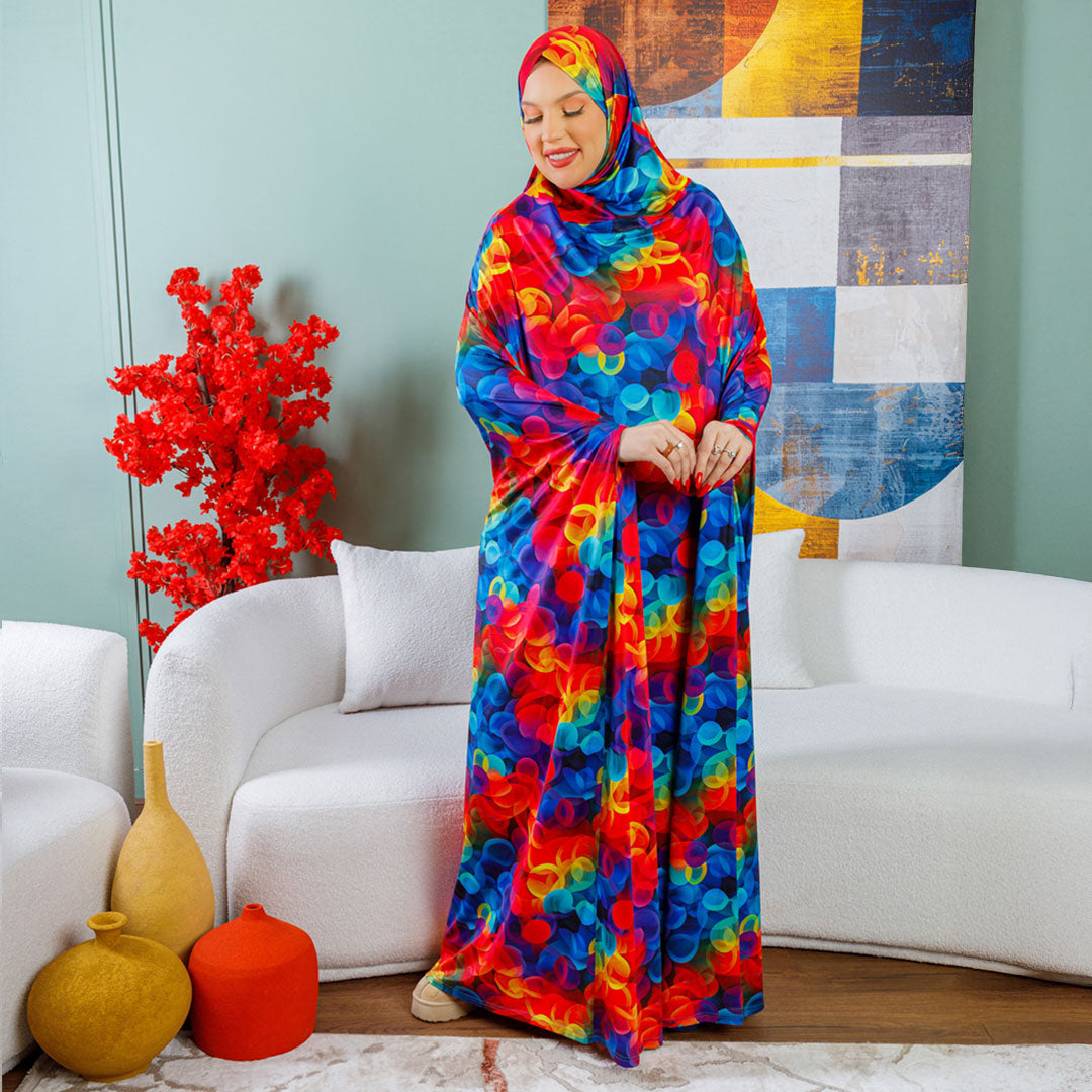 Practical Kuwaiti Jersey prayer dress with headscarf- Printed