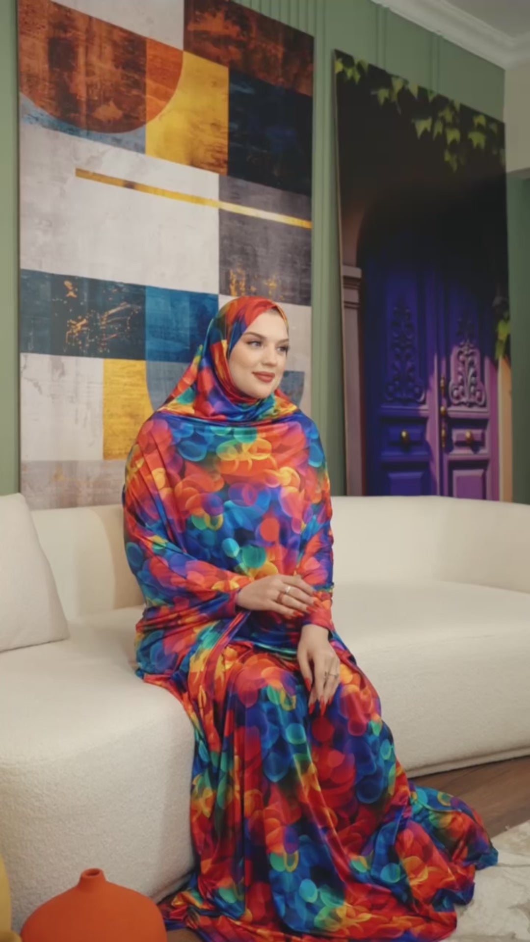 Practical  Jersey   prayer dress (Isdal)(digital print our own designs) Free Size fits 70kg to 100kg With a headscarf