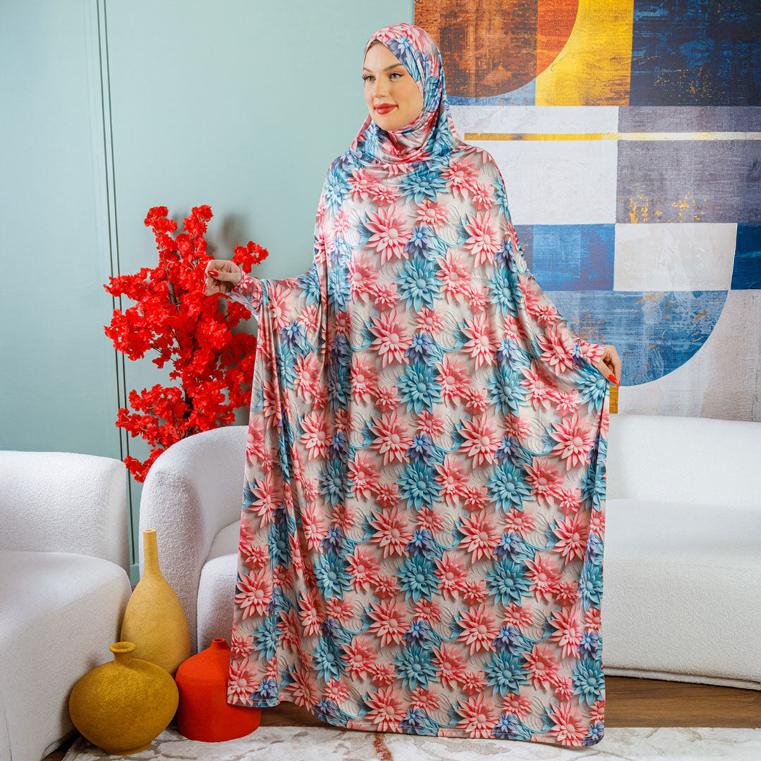 Practical Kuwaiti Jersey prayer dress with headscarf- Printed