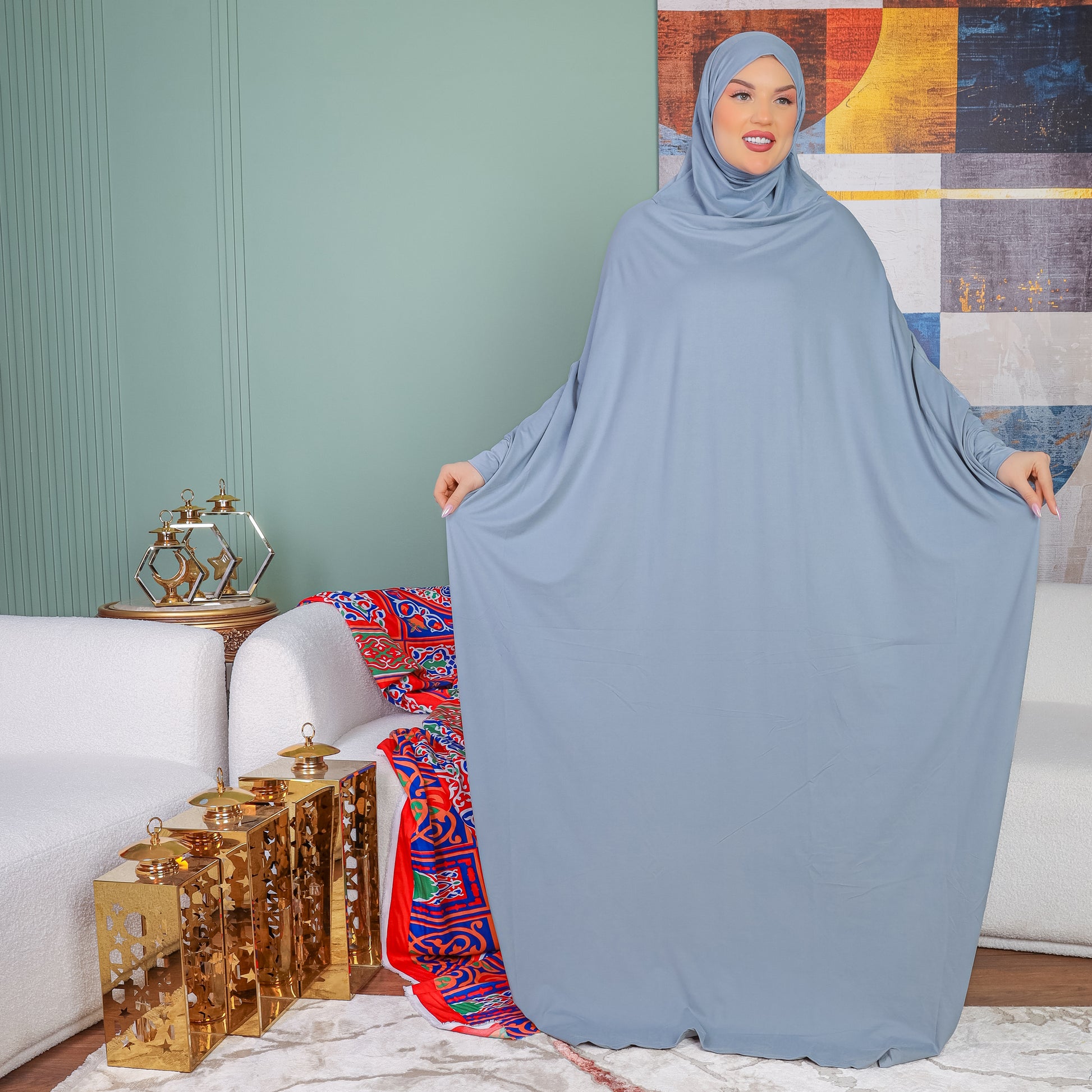 Practical Bahraini prayer dress with headscarf- plain