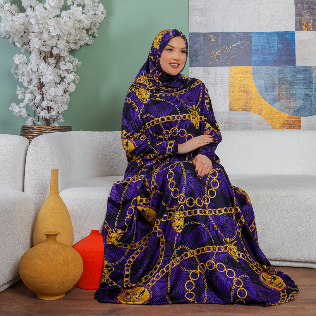 Practical Bahraini prayer dress with headscarf- printed