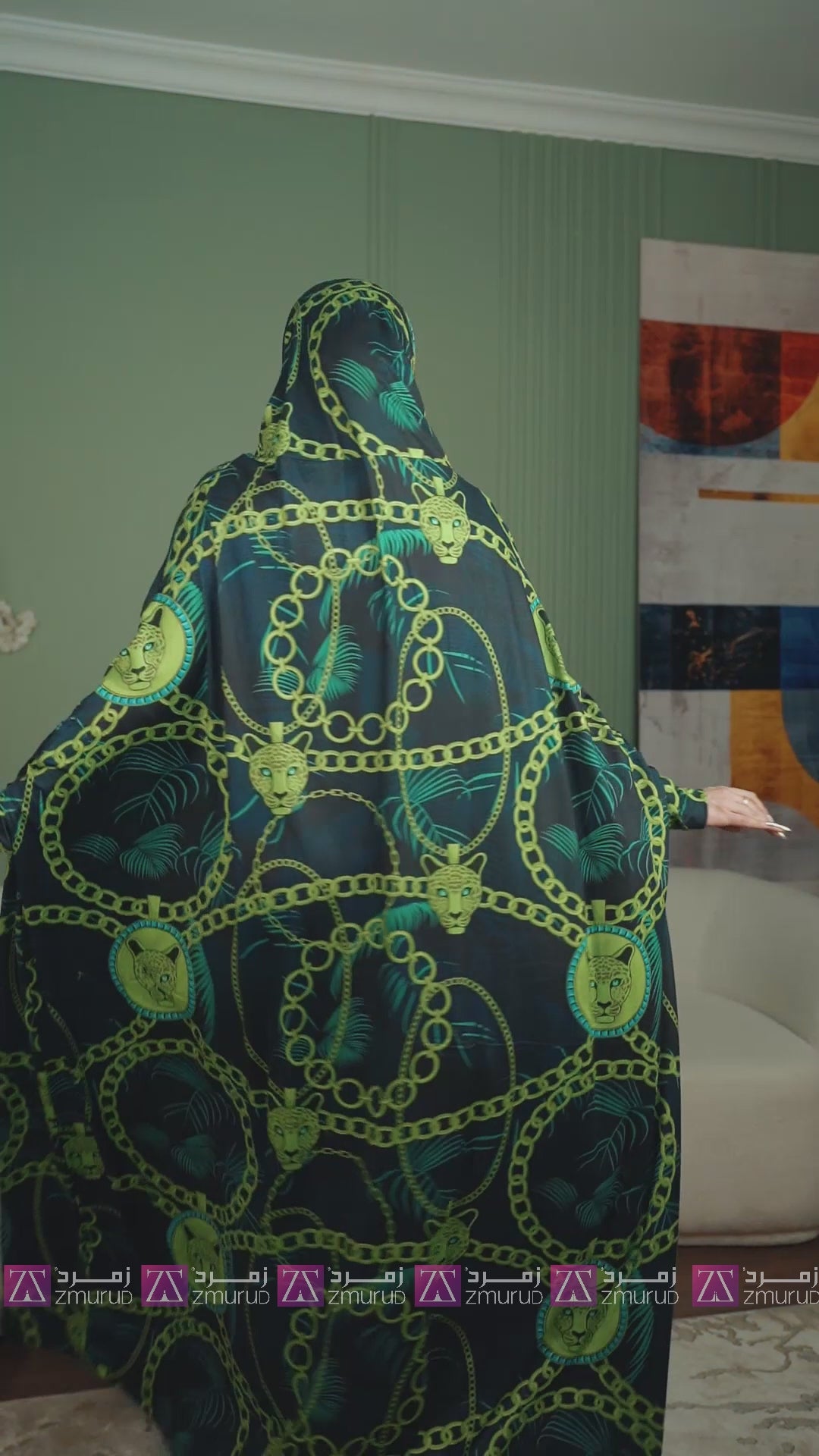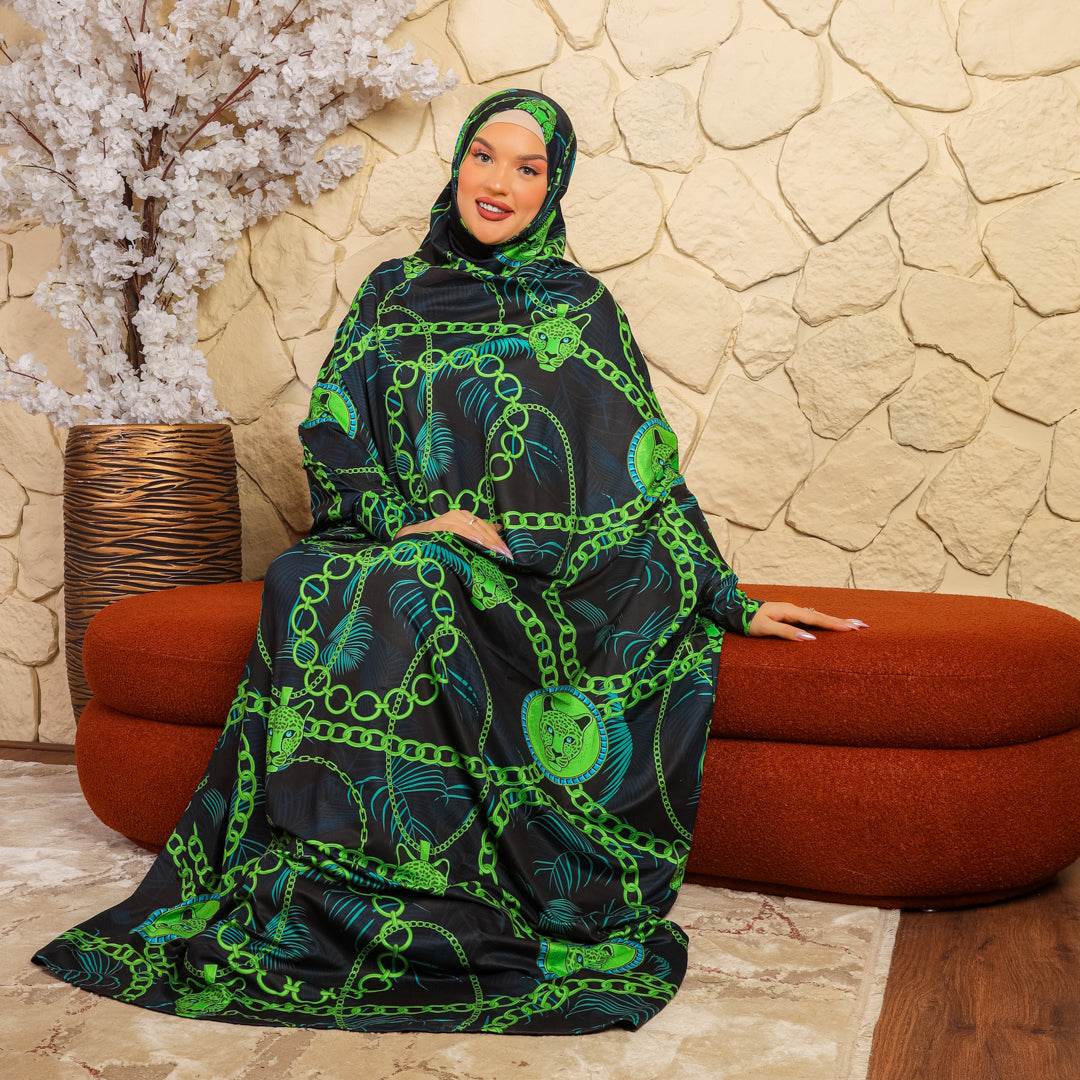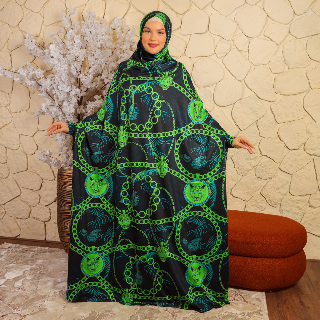 Practical Bahraini prayer dress with headscarf- printed