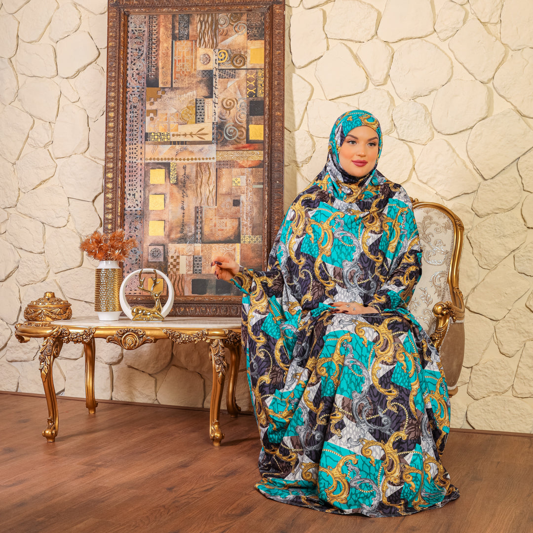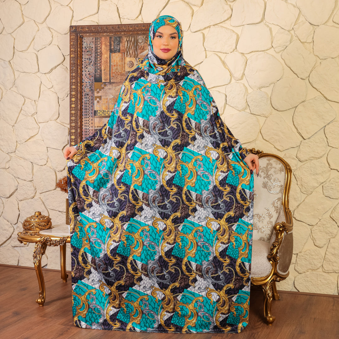 Practical Bahraini prayer dress with headscarf- printed