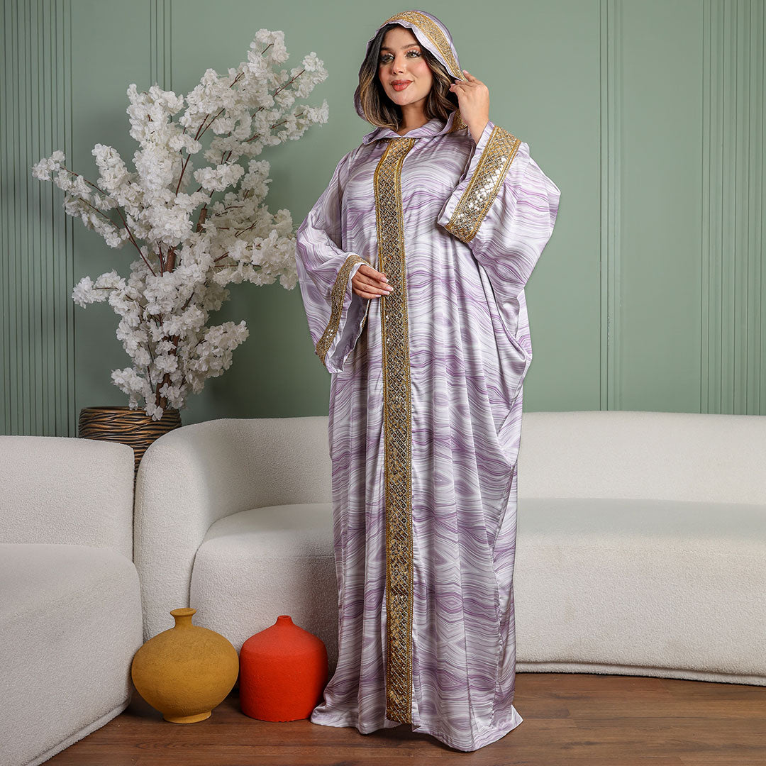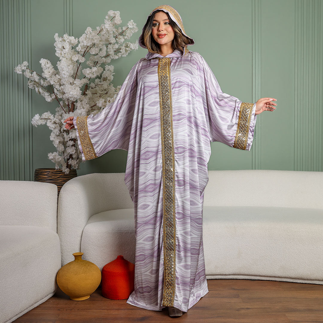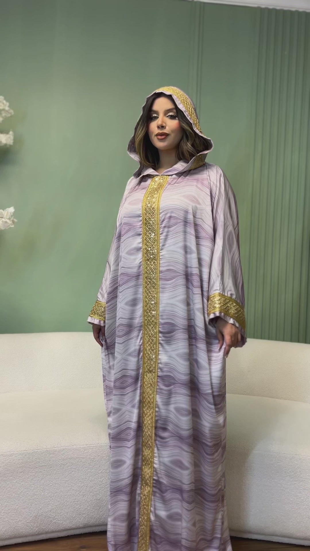 Modern Moroccan Isdal, Armani silky with Indian embroidery ribbon and cape, free size, fits 70 to 100 kg