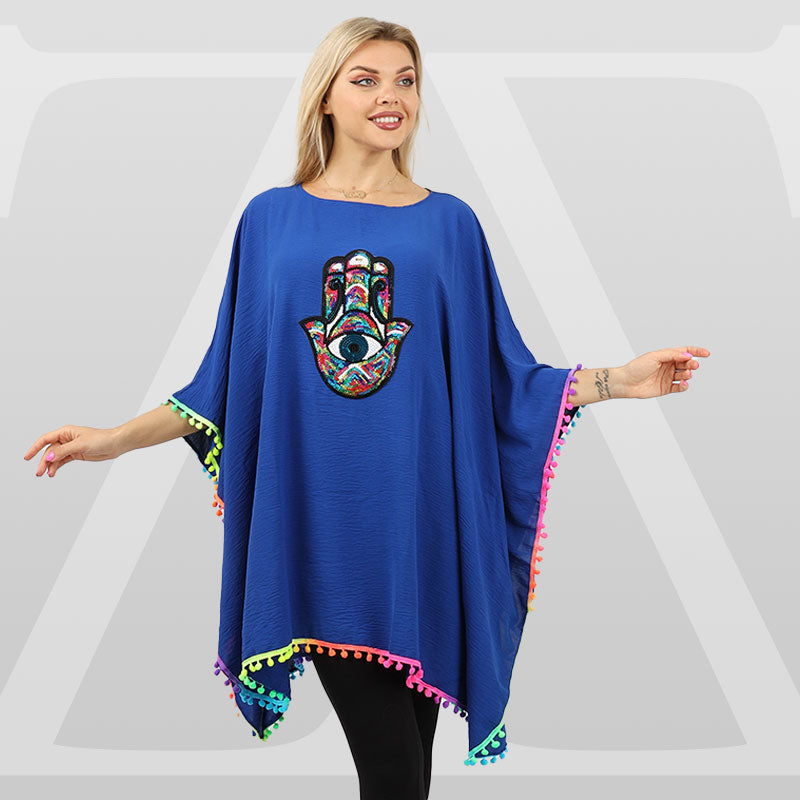 Crepe Poncho Embroidered , free size, fits 70kg to 130kg