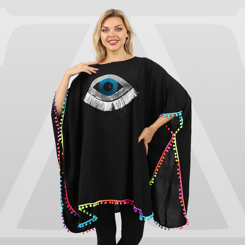 Crepe Poncho Embroidered , free size, fits 70kg to 130kg