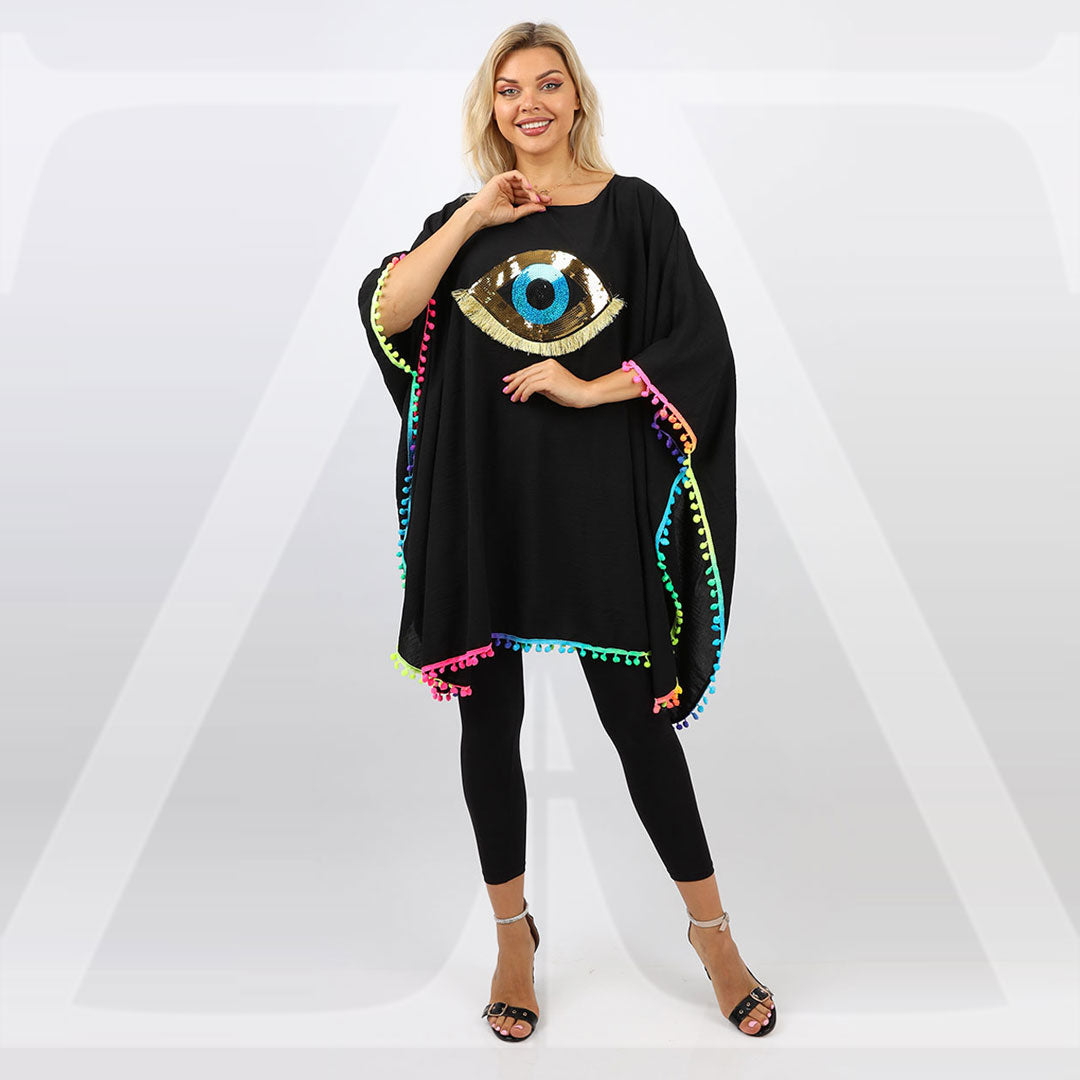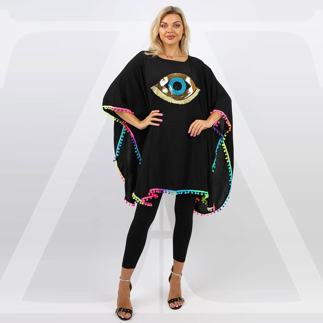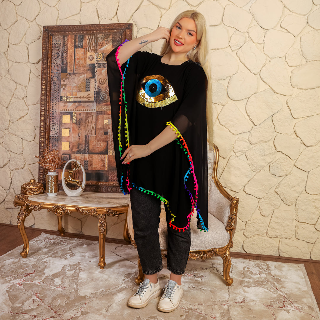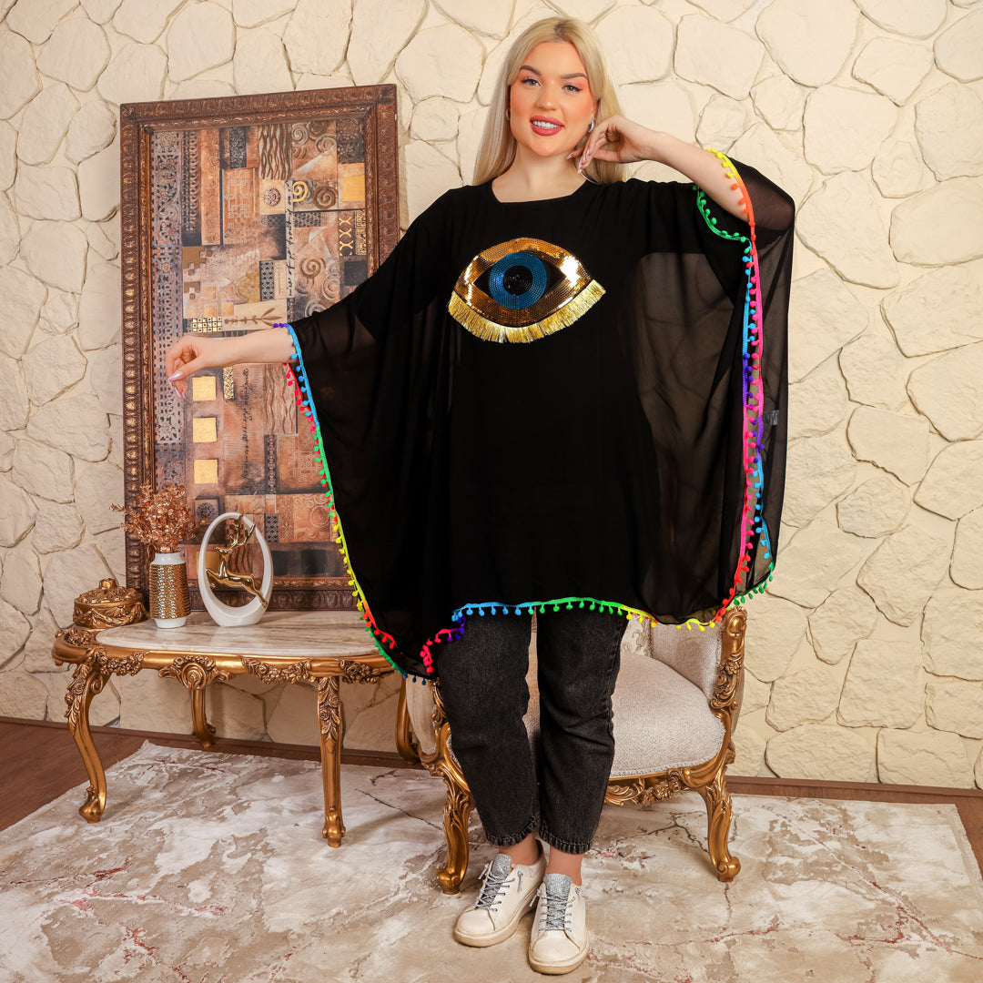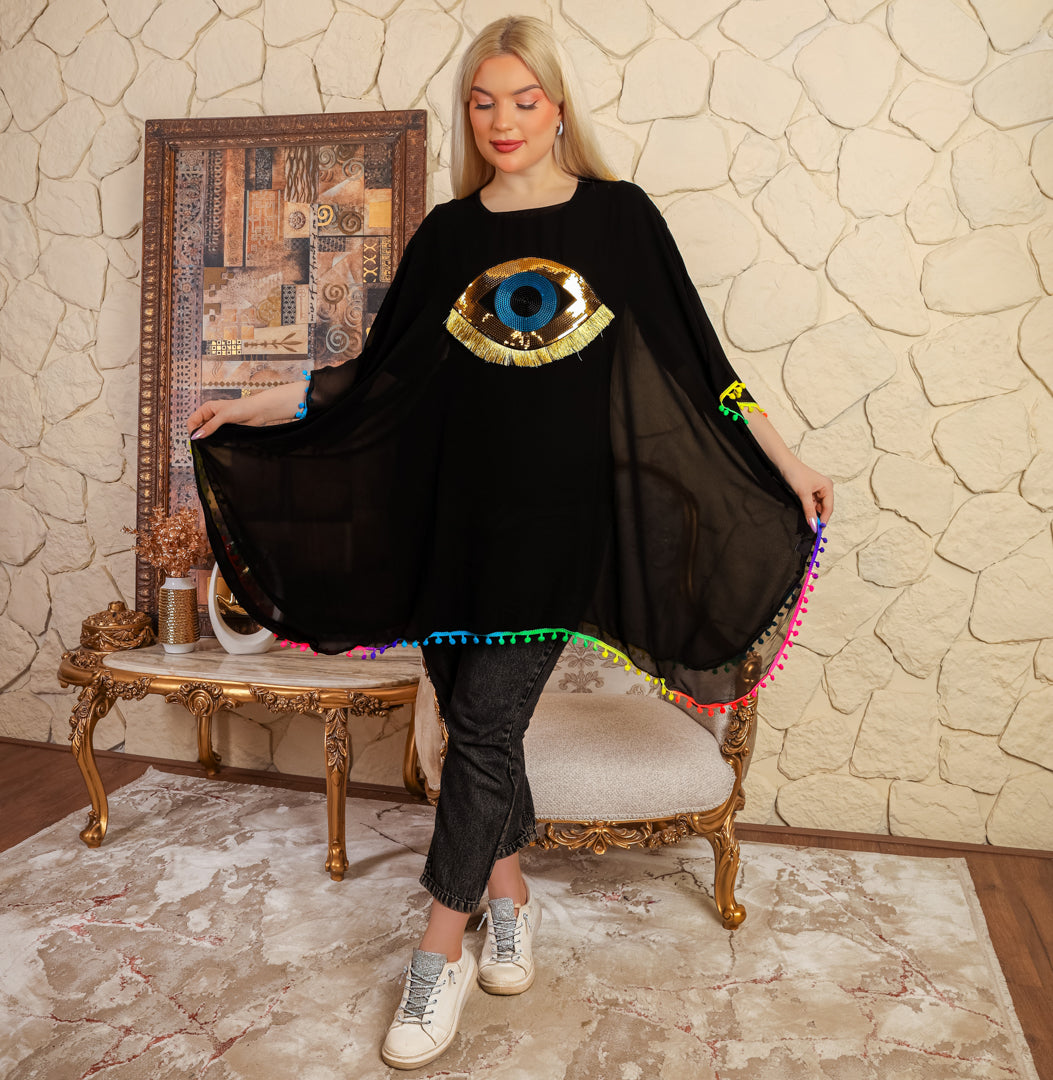 Crepe Poncho Embroidered , free size, fits 70kg to 130kg