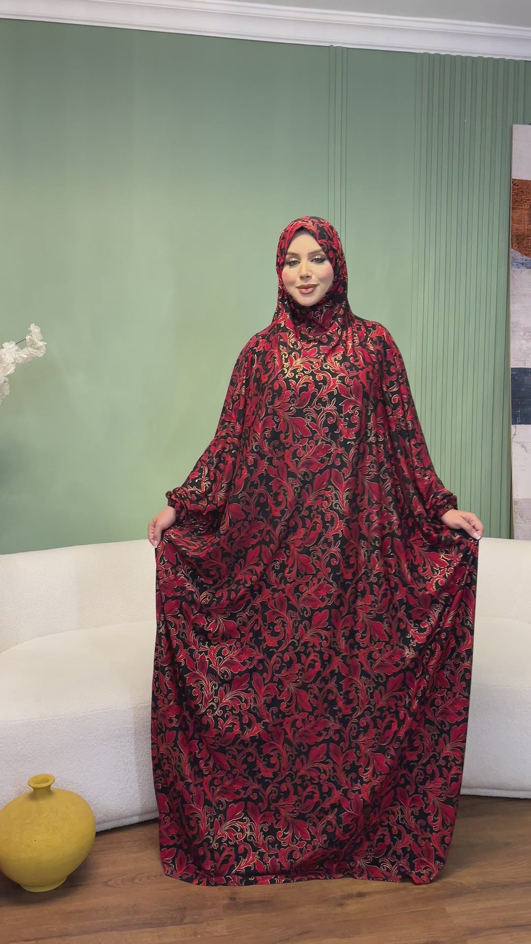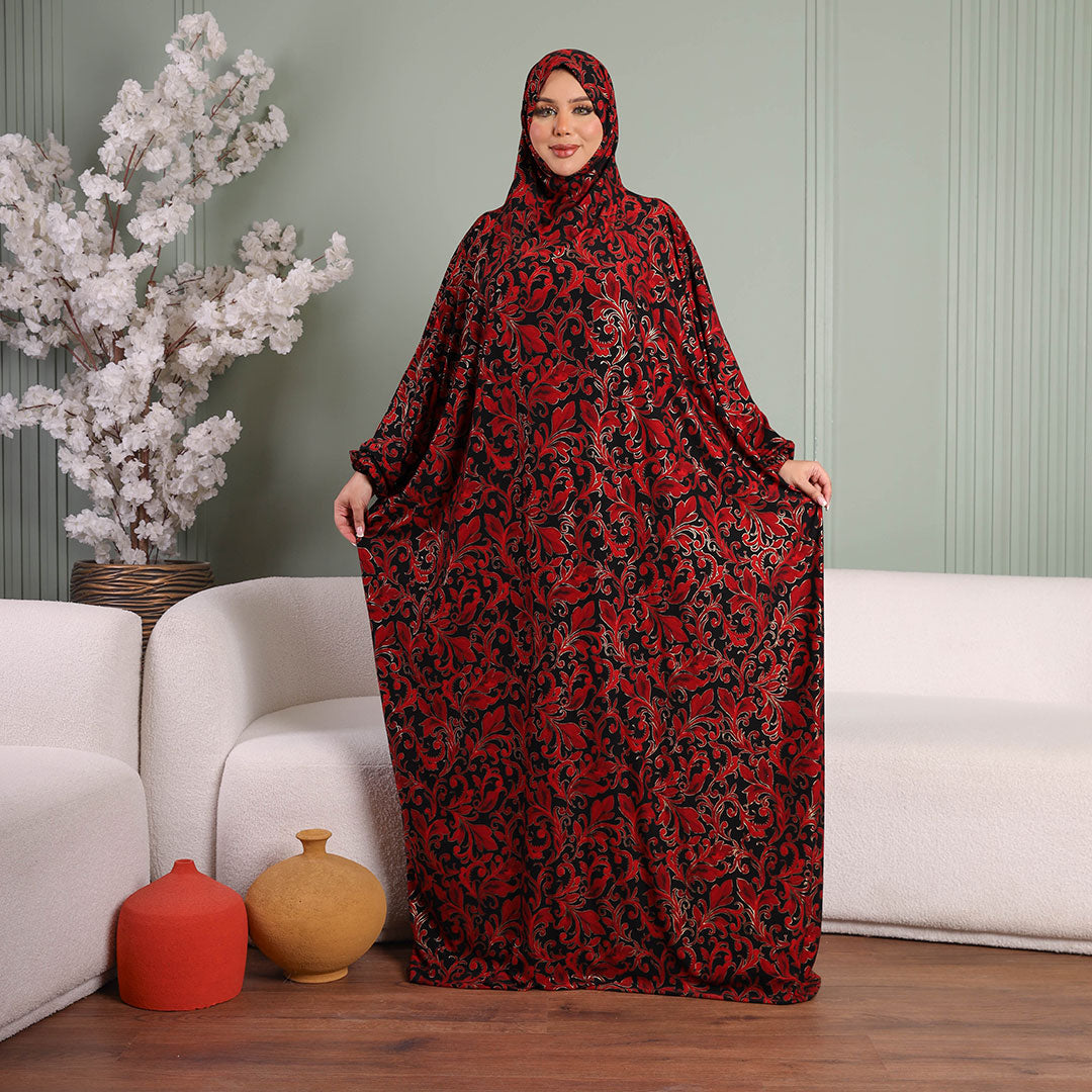 Practical Kuwaiti Jersey prayer dress with headscarf- Printed