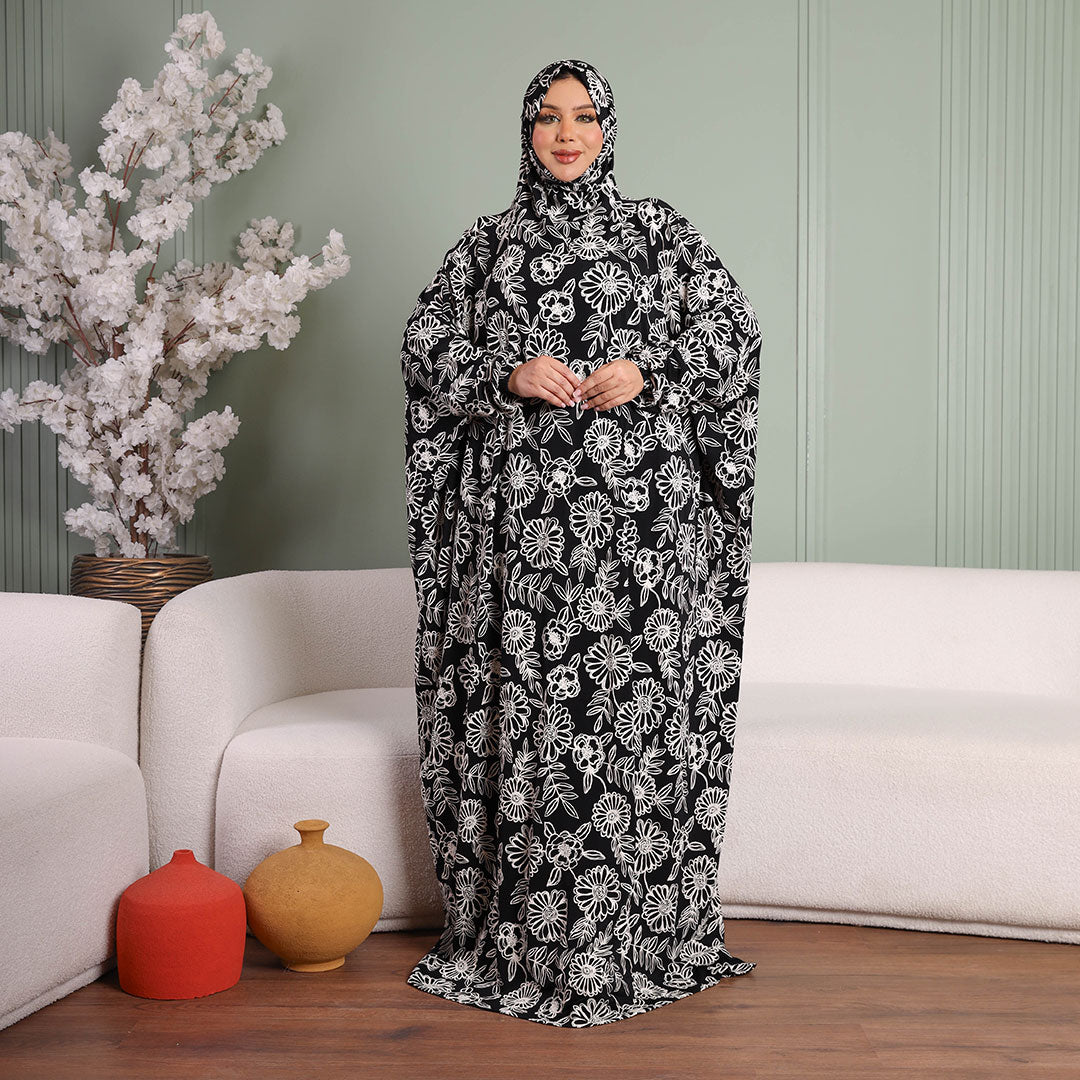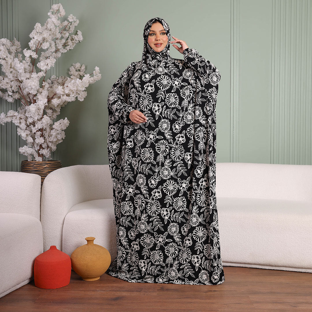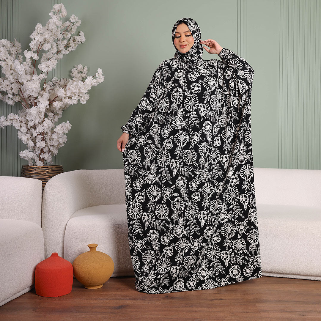 Practical Kuwaiti Jersey prayer dress with headscarf- Printed
