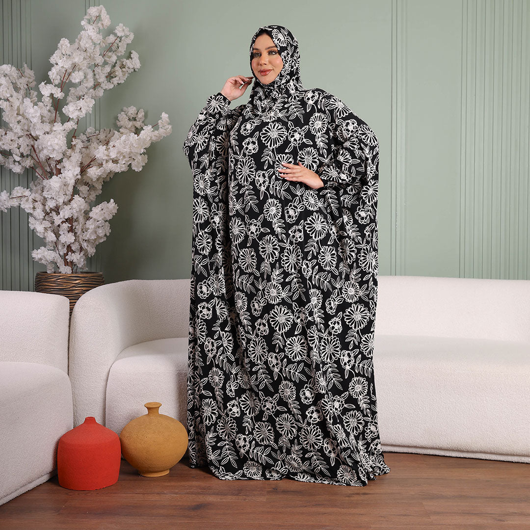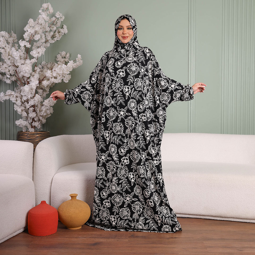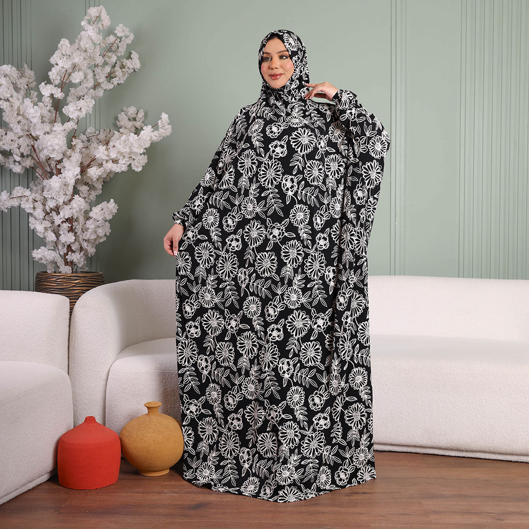 Practical Kuwaiti Jersey prayer dress with headscarf- Printed
