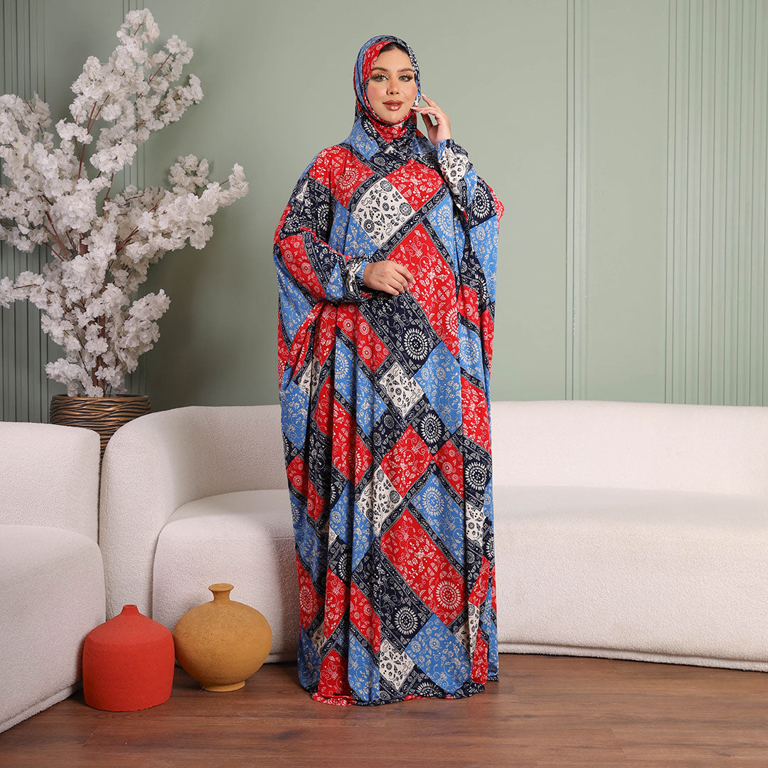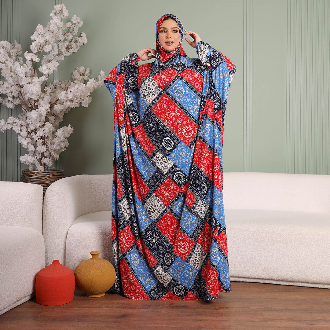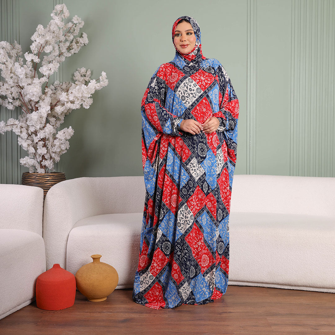 Practical Kuwaiti Jersey prayer dress with headscarf- Printed