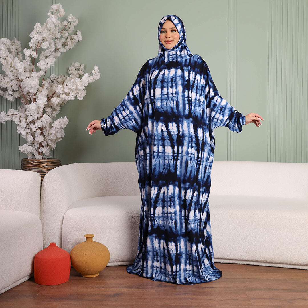 Practical Kuwaiti Jersey prayer dress with headscarf- Printed