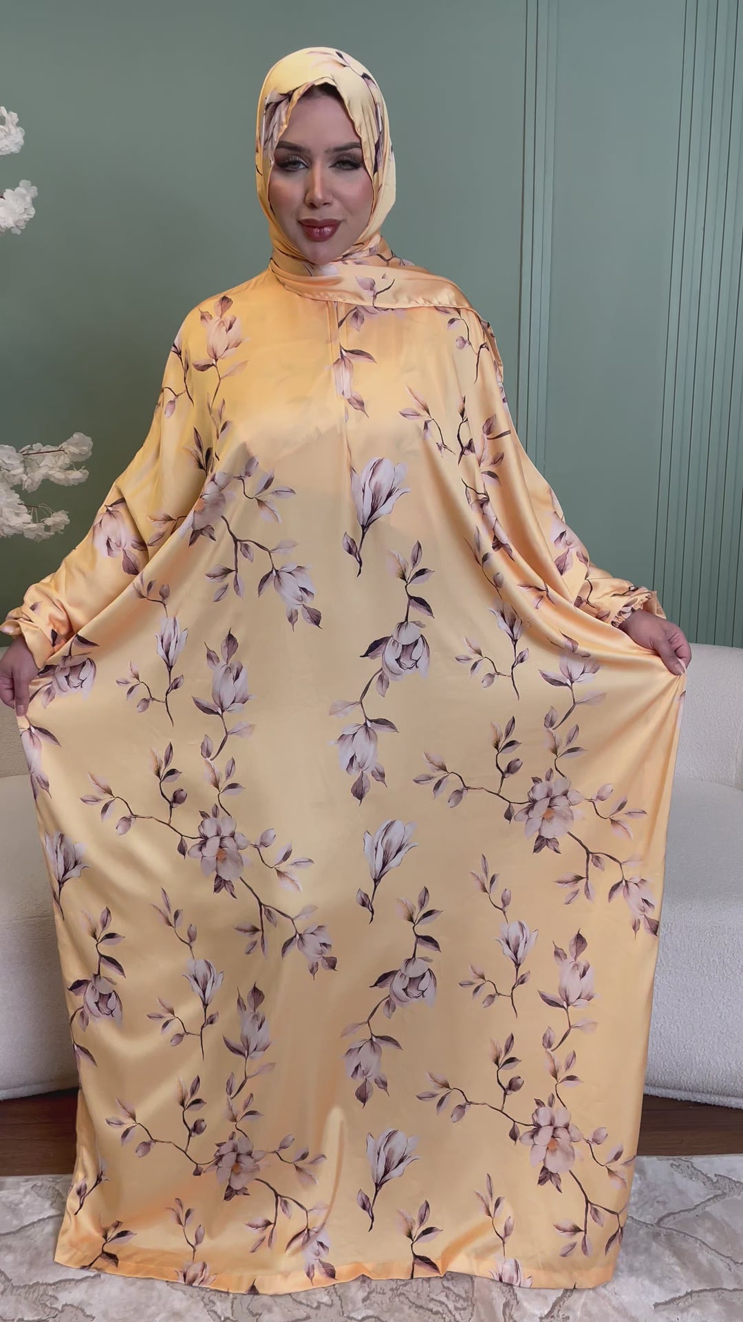 Practical Silky Satin prayer dress (Isdal) (digital print our own designs) Free Size fits 70kg to 130kg With a connected veil